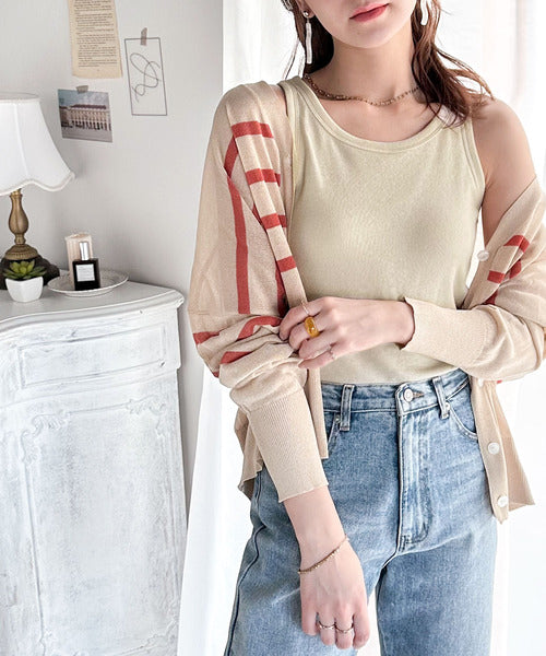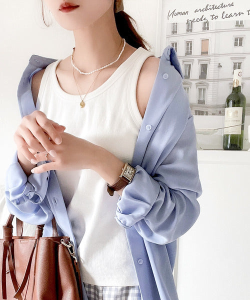 インナーとしてはもちろん、オーバーサイズのカーディガンやボートネックカットソーなどと合わせてレイヤードも楽しめます。