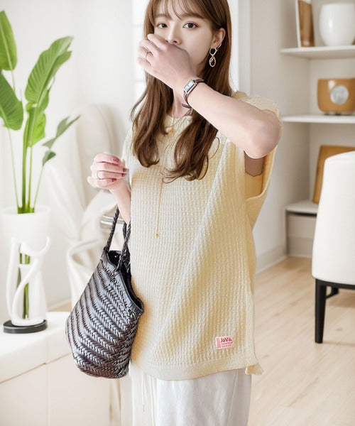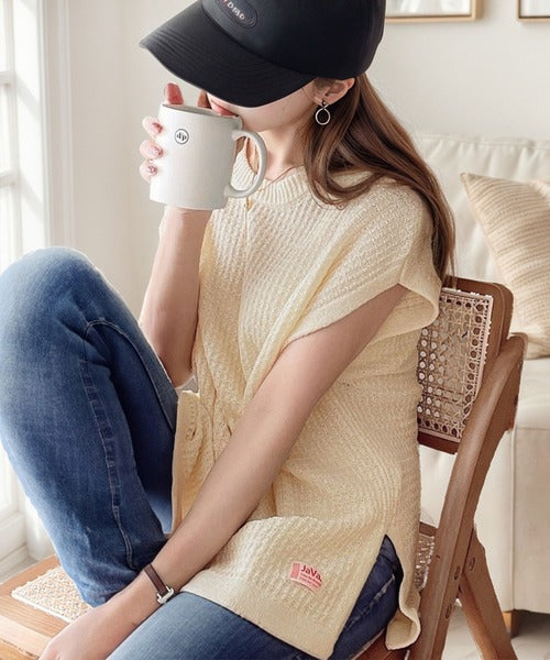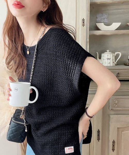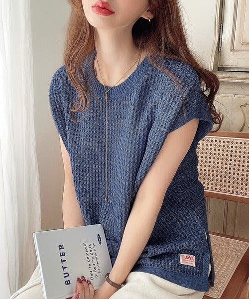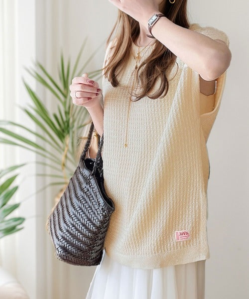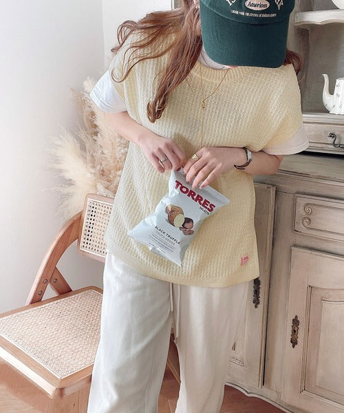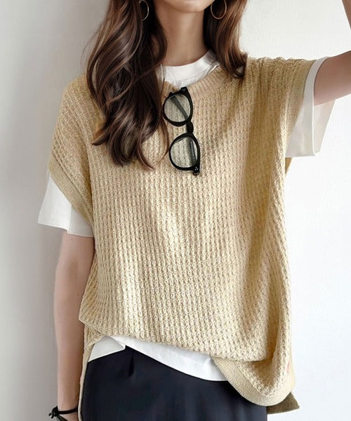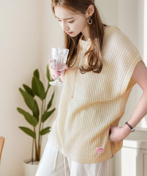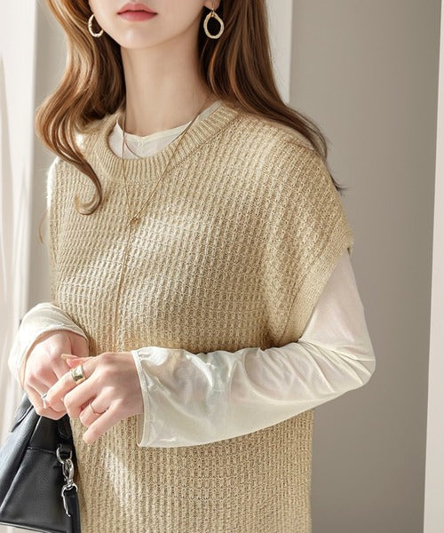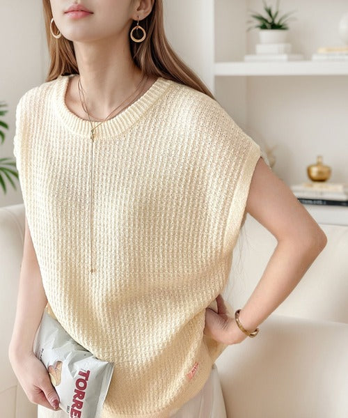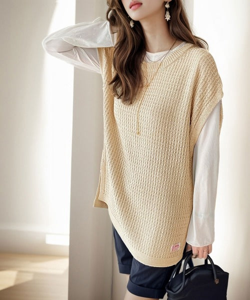 ざっくり編んだ表面感のある素材が目を惹くニットベスト。