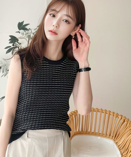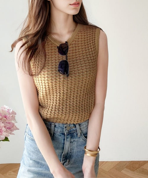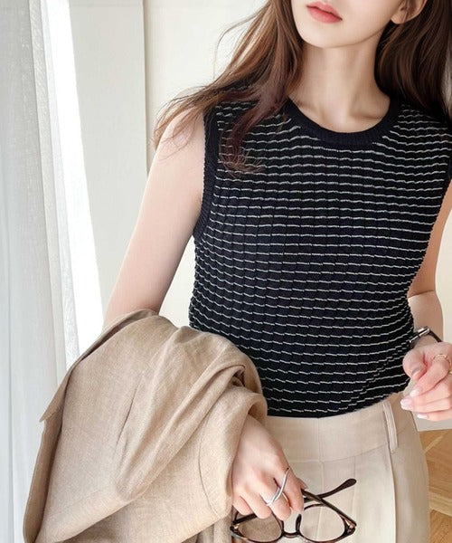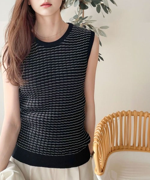 1枚でもオシャレに決まるレトロチックなニットタンク。
