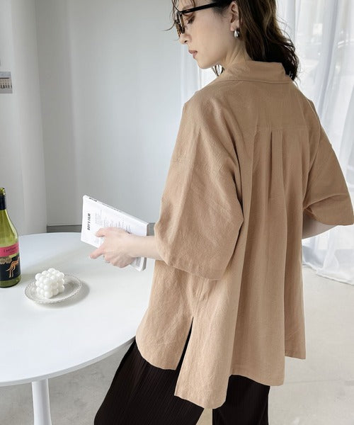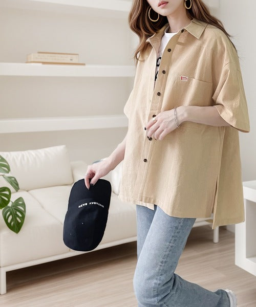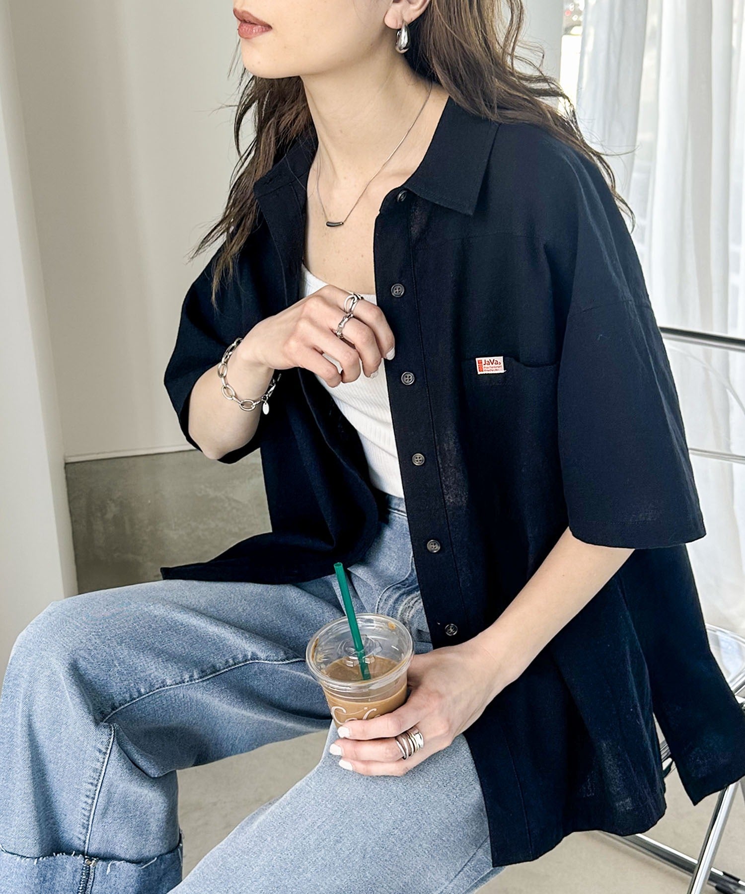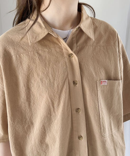 《JaVa ジャバコラボ》軽やか&リラクシー。コットン100% サイドスリット半袖シャツ jv1020089