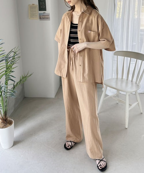 同素材のパンツと合わせたセットアップコーデもおすすめ♪