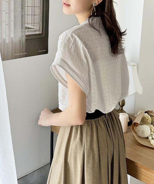 程よい透け感のシアーサッカーがレディライクな印象に。