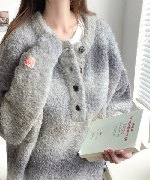 存在感のある配色グラデーションがお洒落見えなブークレーニット。