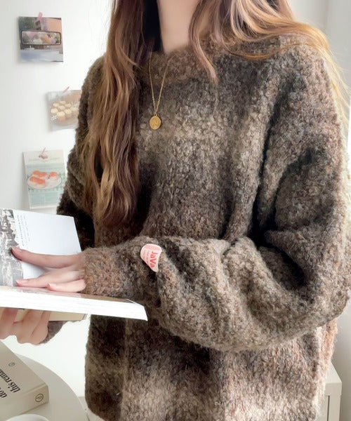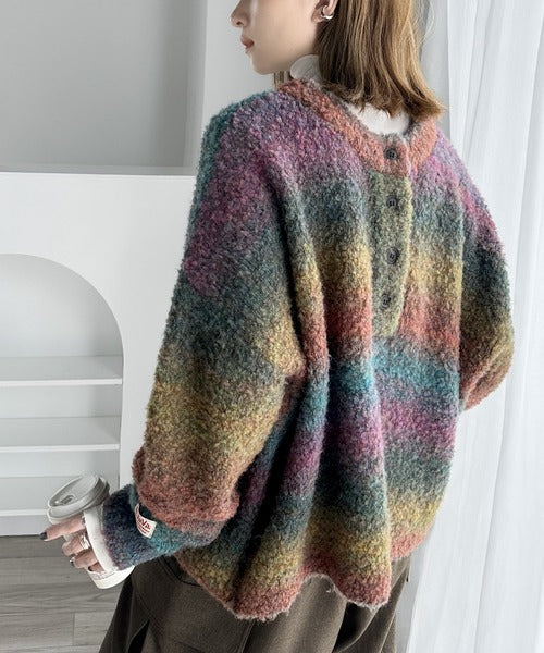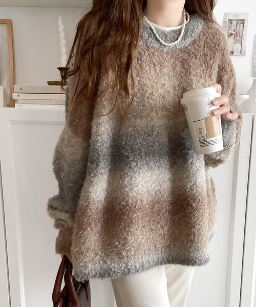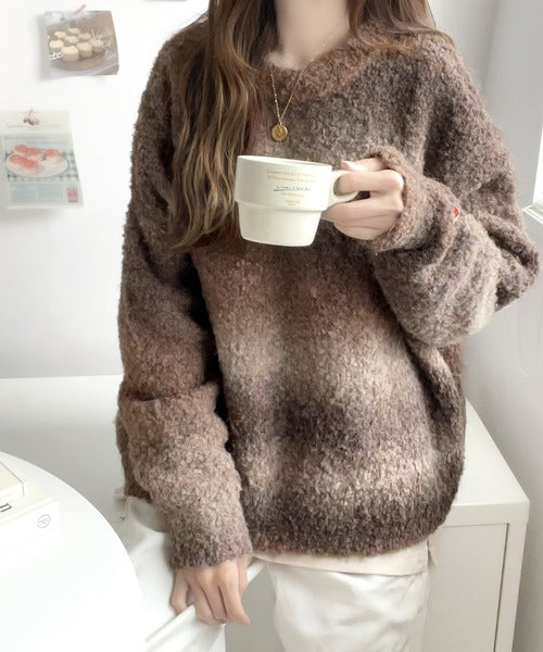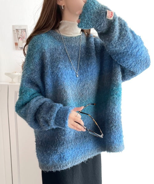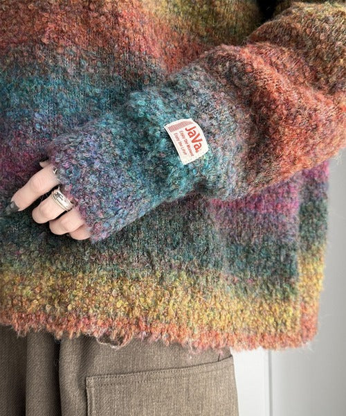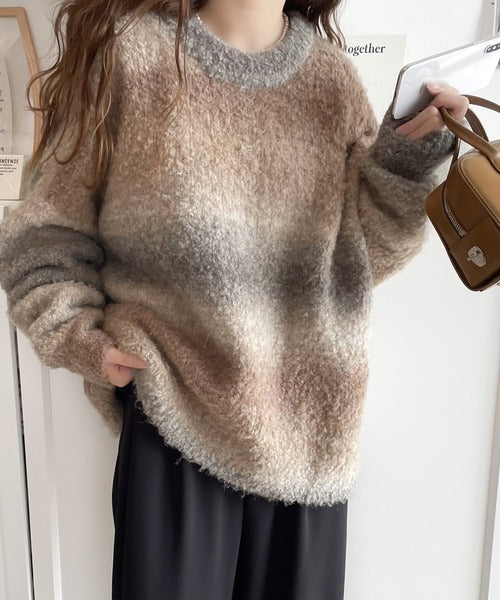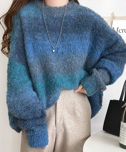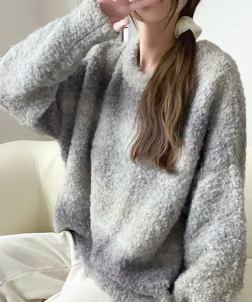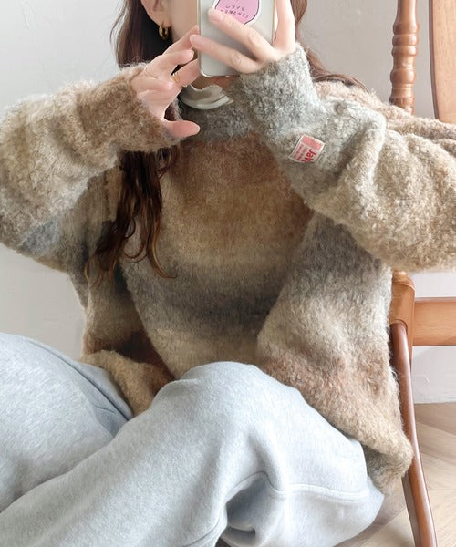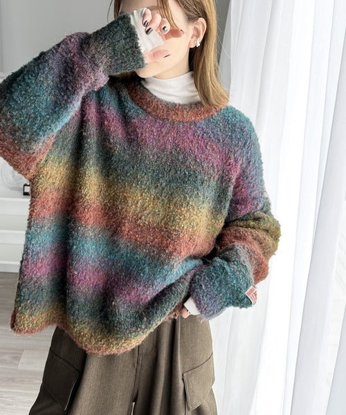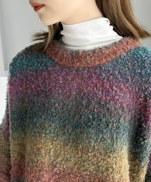 印象的なカラーグラデ―ションでトレンド感あるお洒落な着こなしが叶うブークレニット。