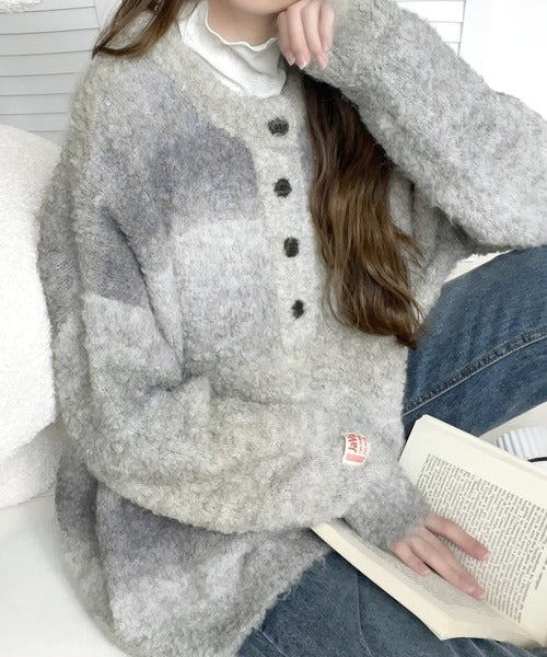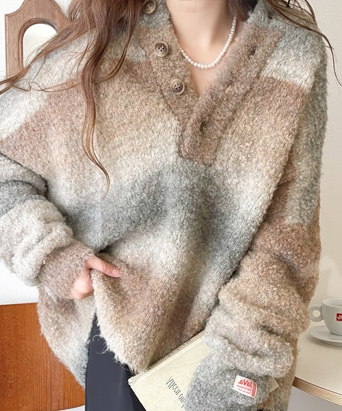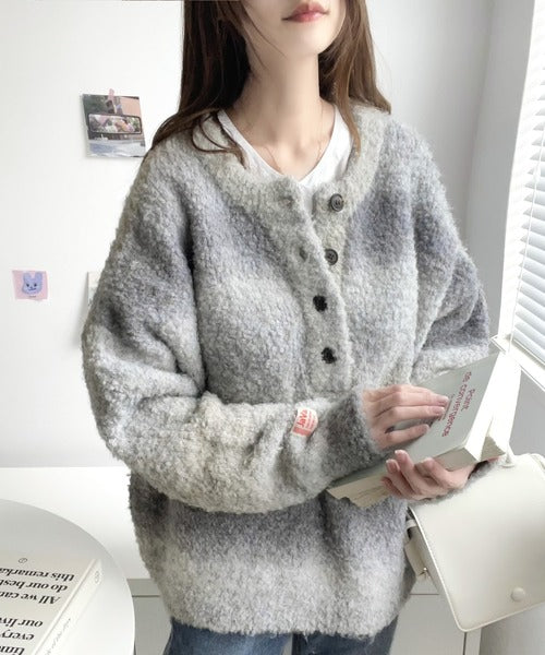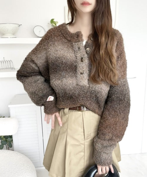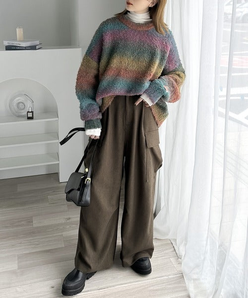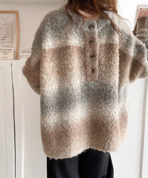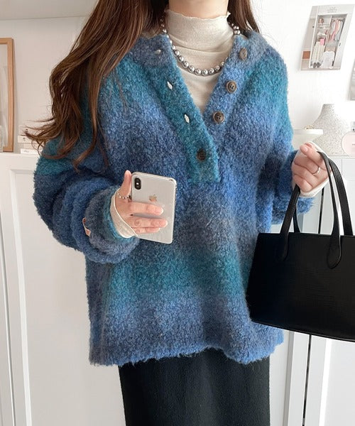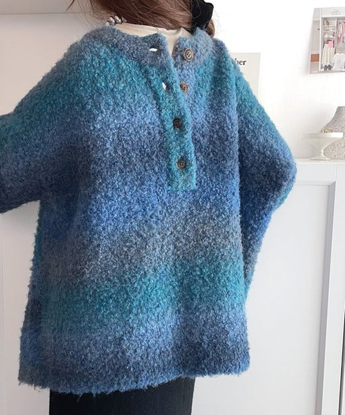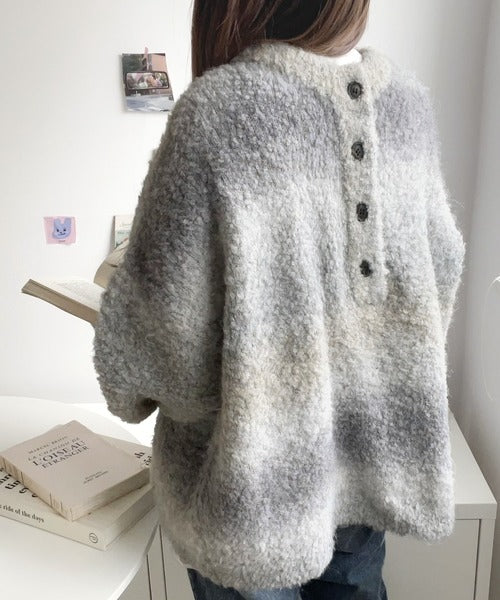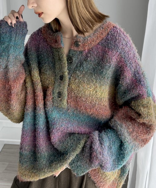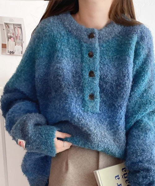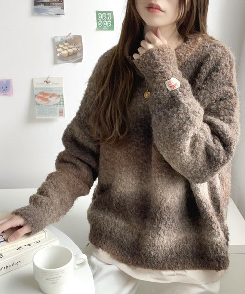印象的なカラーグラデ―ションでトレンド感あるお洒落な着こなしが叶うブークレニット。
