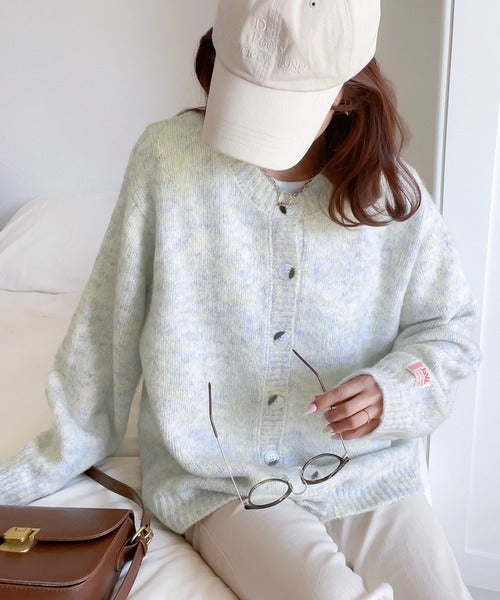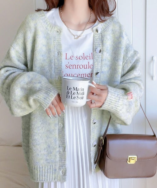 ミックスカラーのふんわり柔らかなニットが暗くなりがちな冬のスタイルを華やかに演出します。