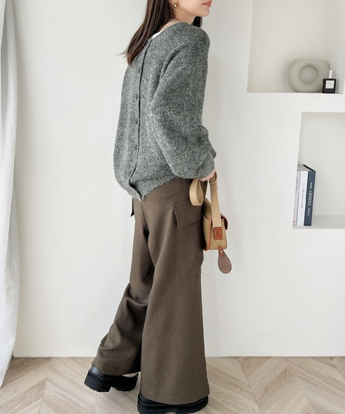 汎用性の高いシンプルな2wayカーディガンは、ボリュームスリーブがポイント。