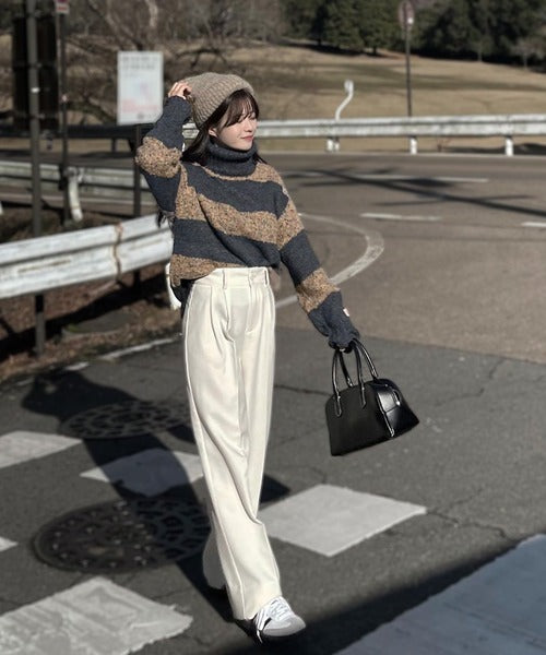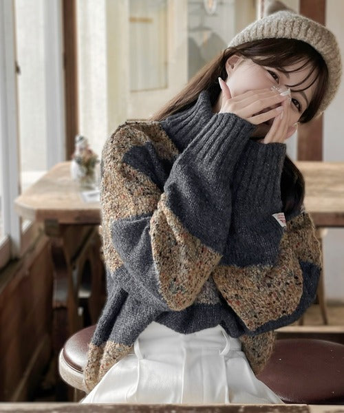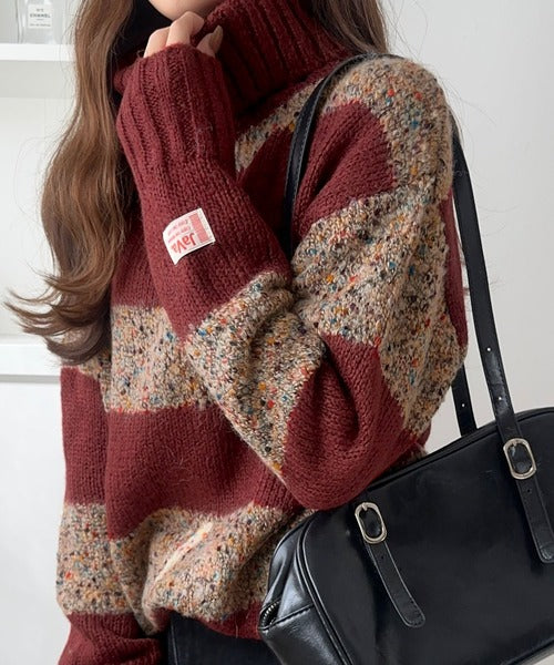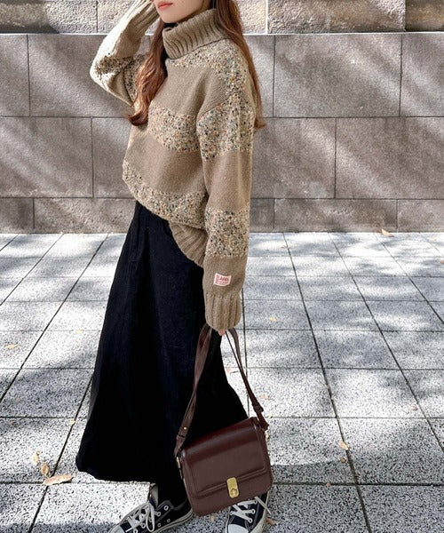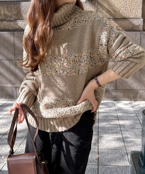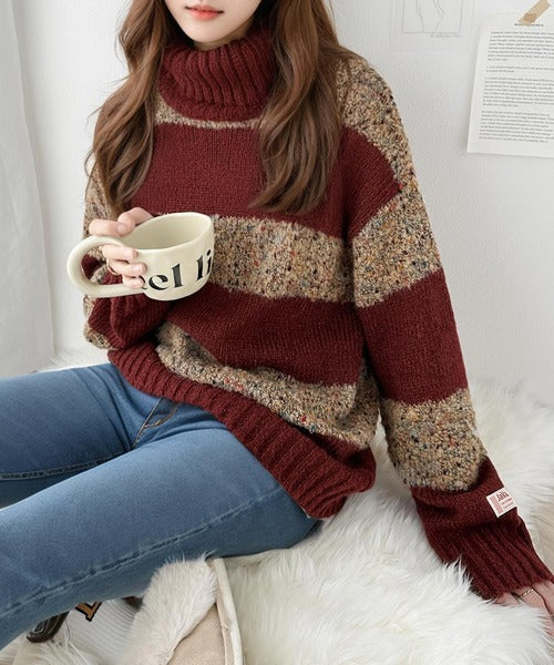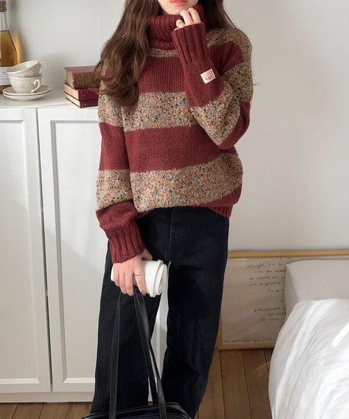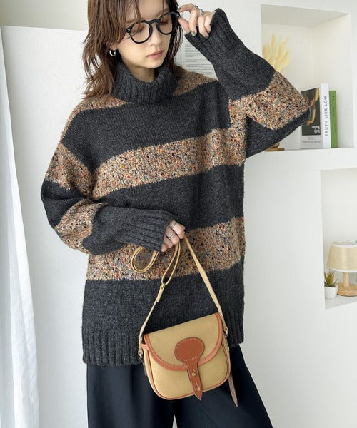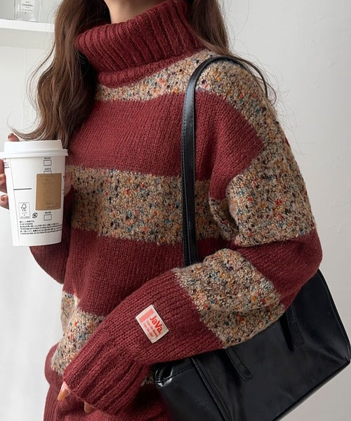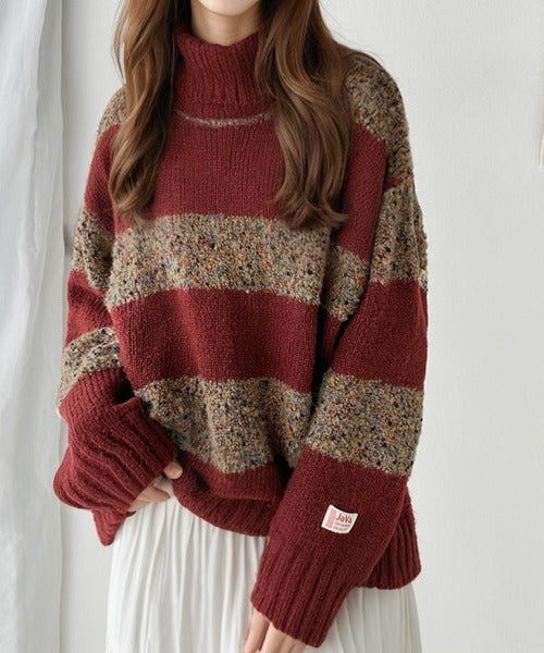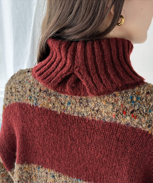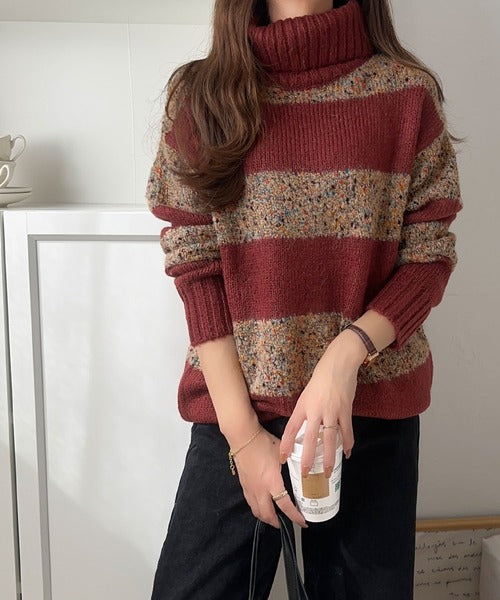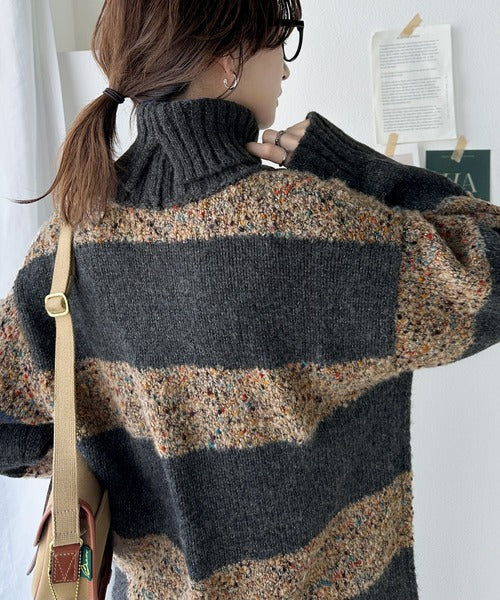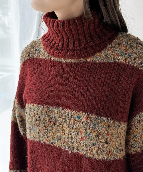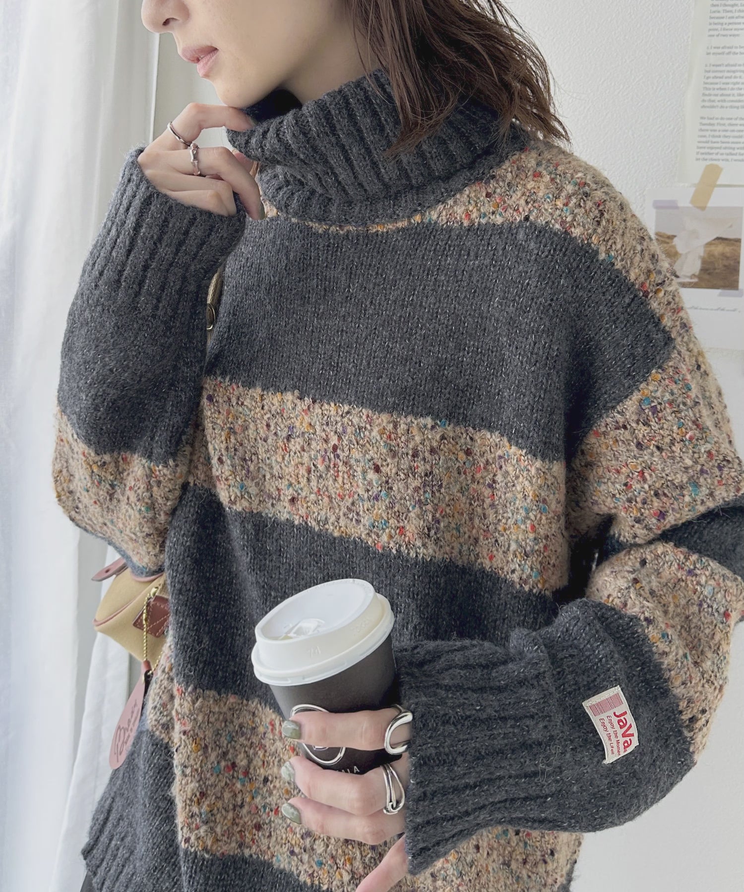 《Javaジャバコラボ》存在感のある旬なitem。カラーネップタートルネックボーダーニット jv1020119