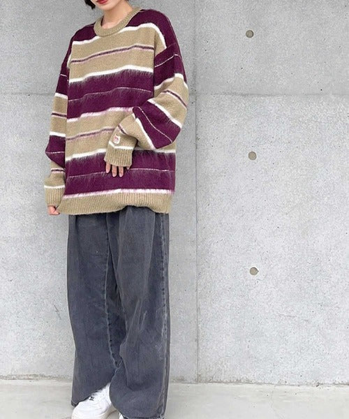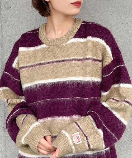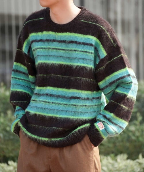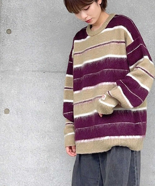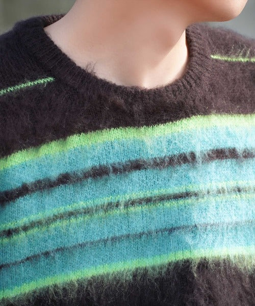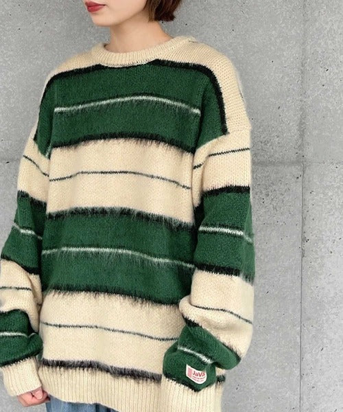 《JaVa ジャバコラボ》マルチボーダーシャギーニットプルオーバー jv1029007