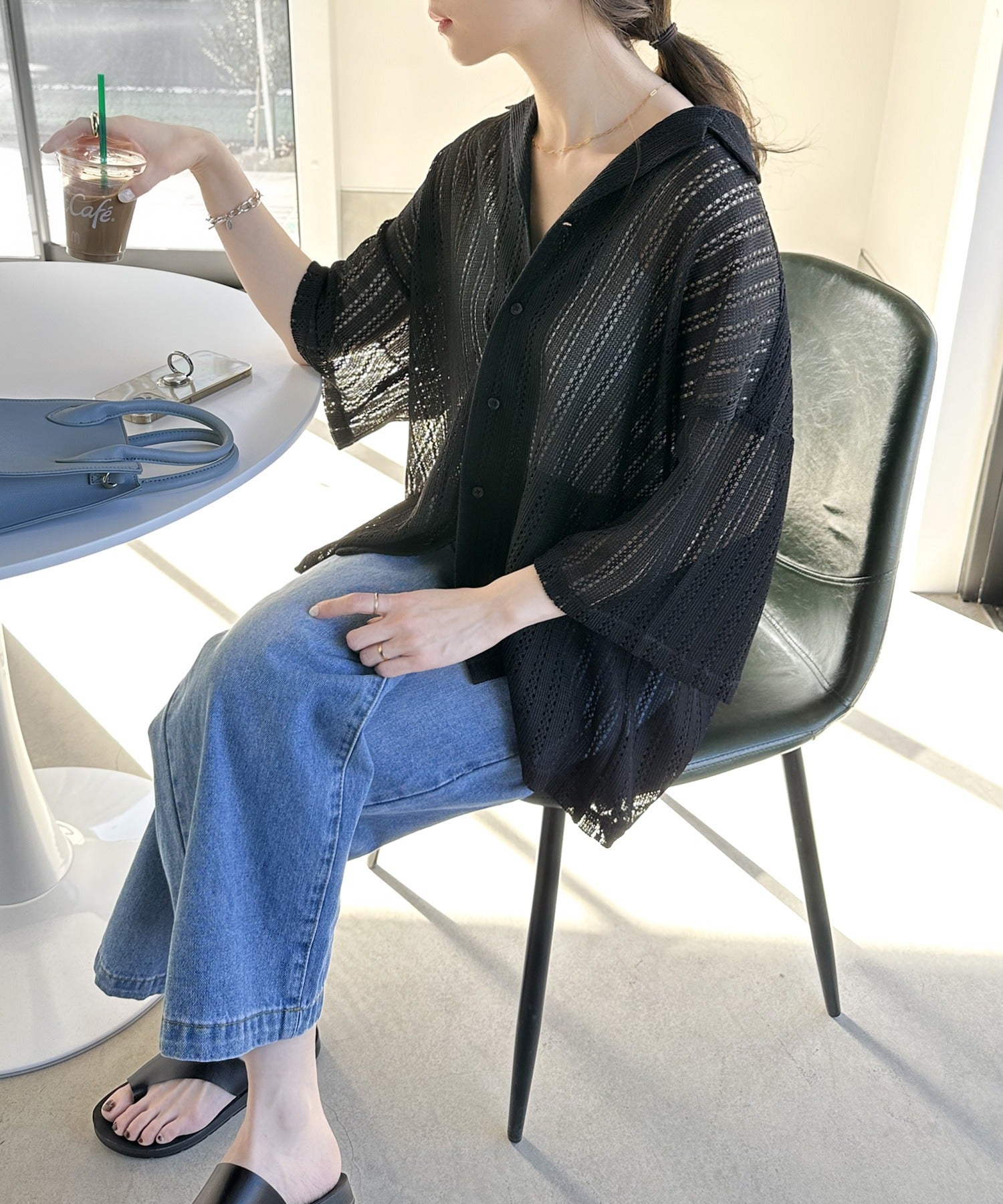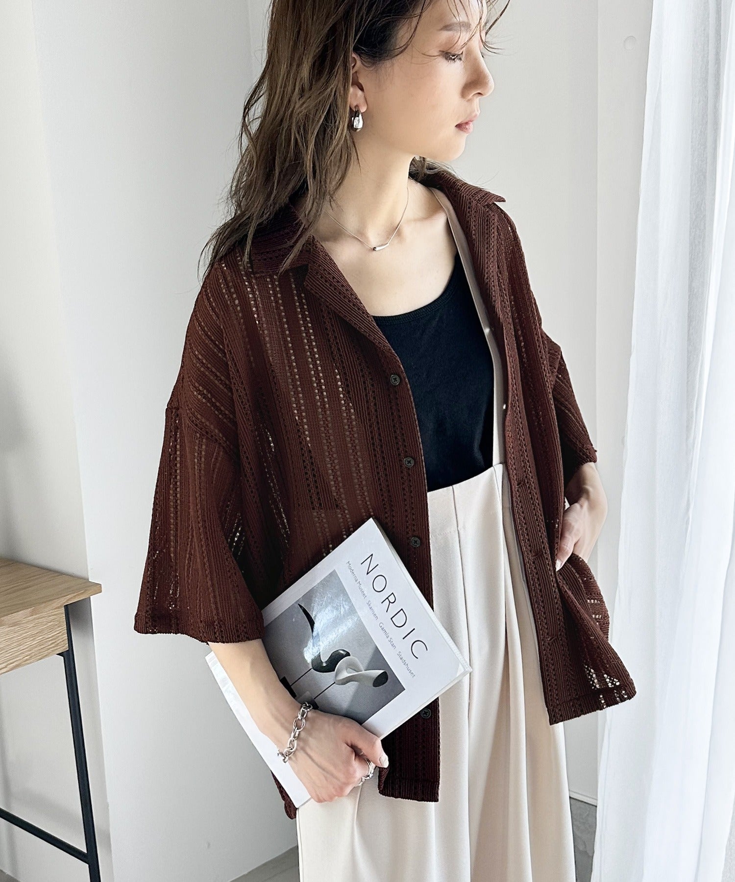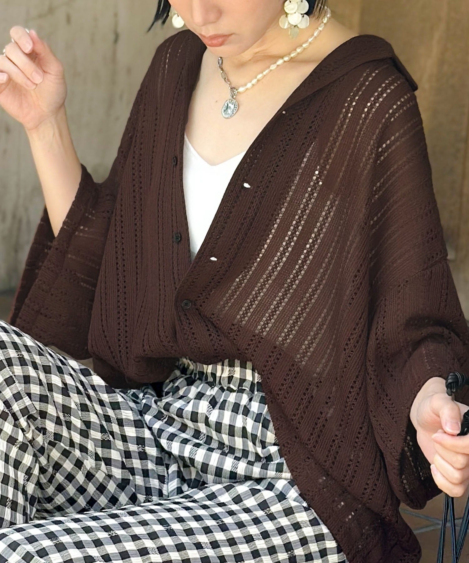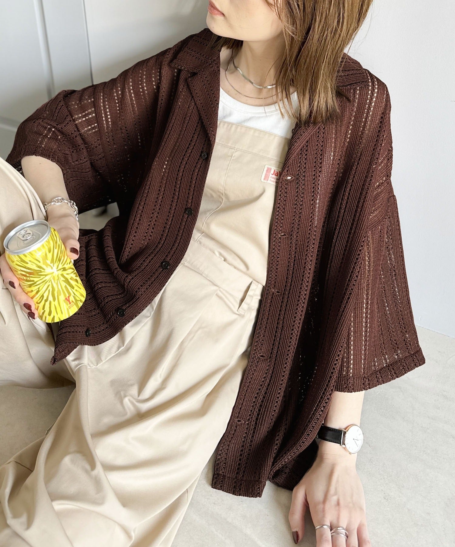 キャミソールやインナーと合わせれば暑い夏にぴったりな涼し気なレイヤードスタイルに。