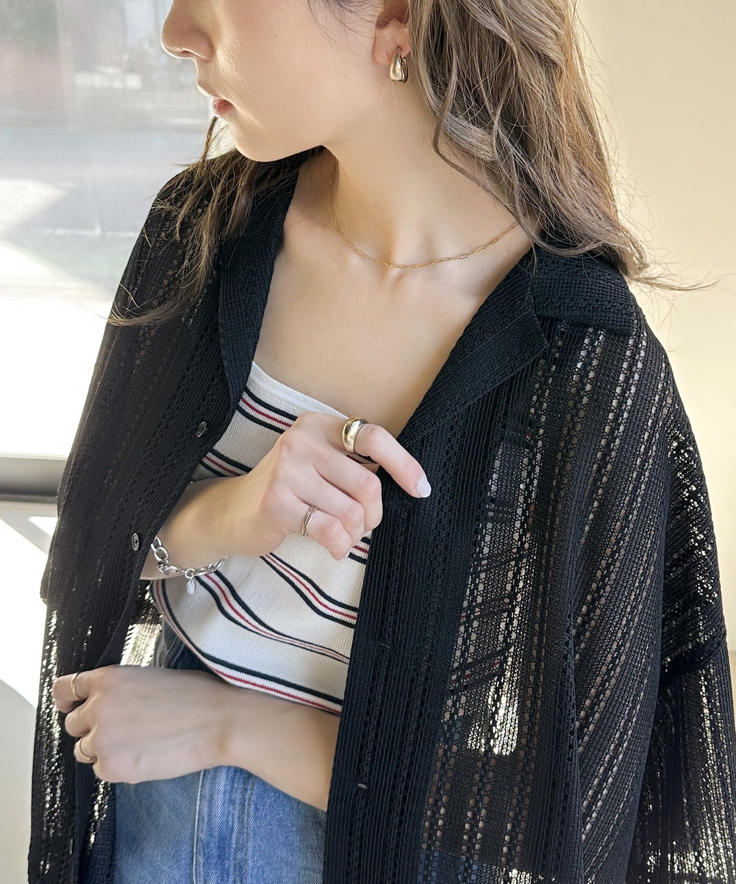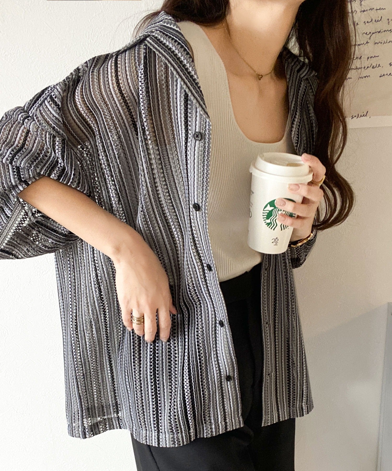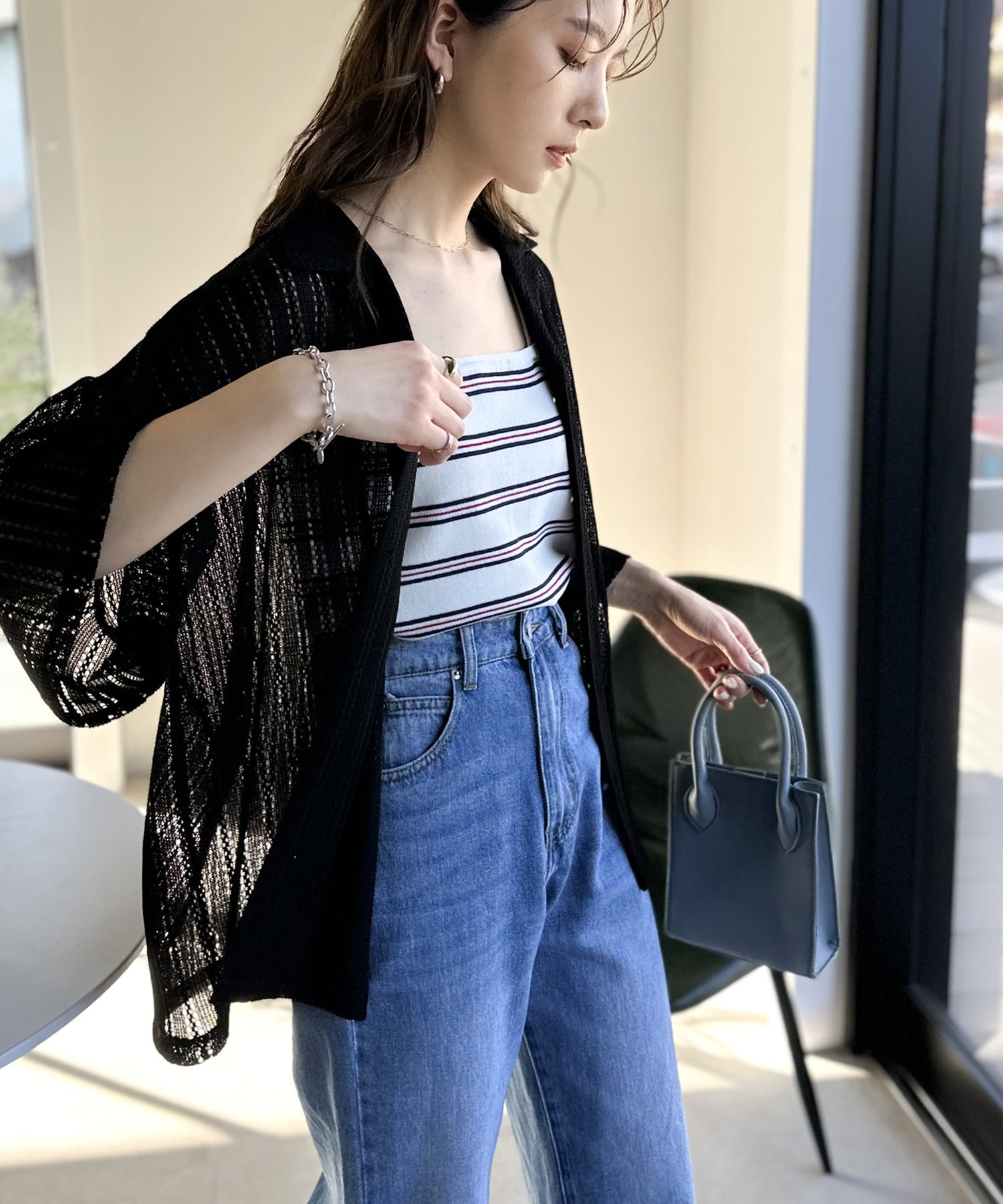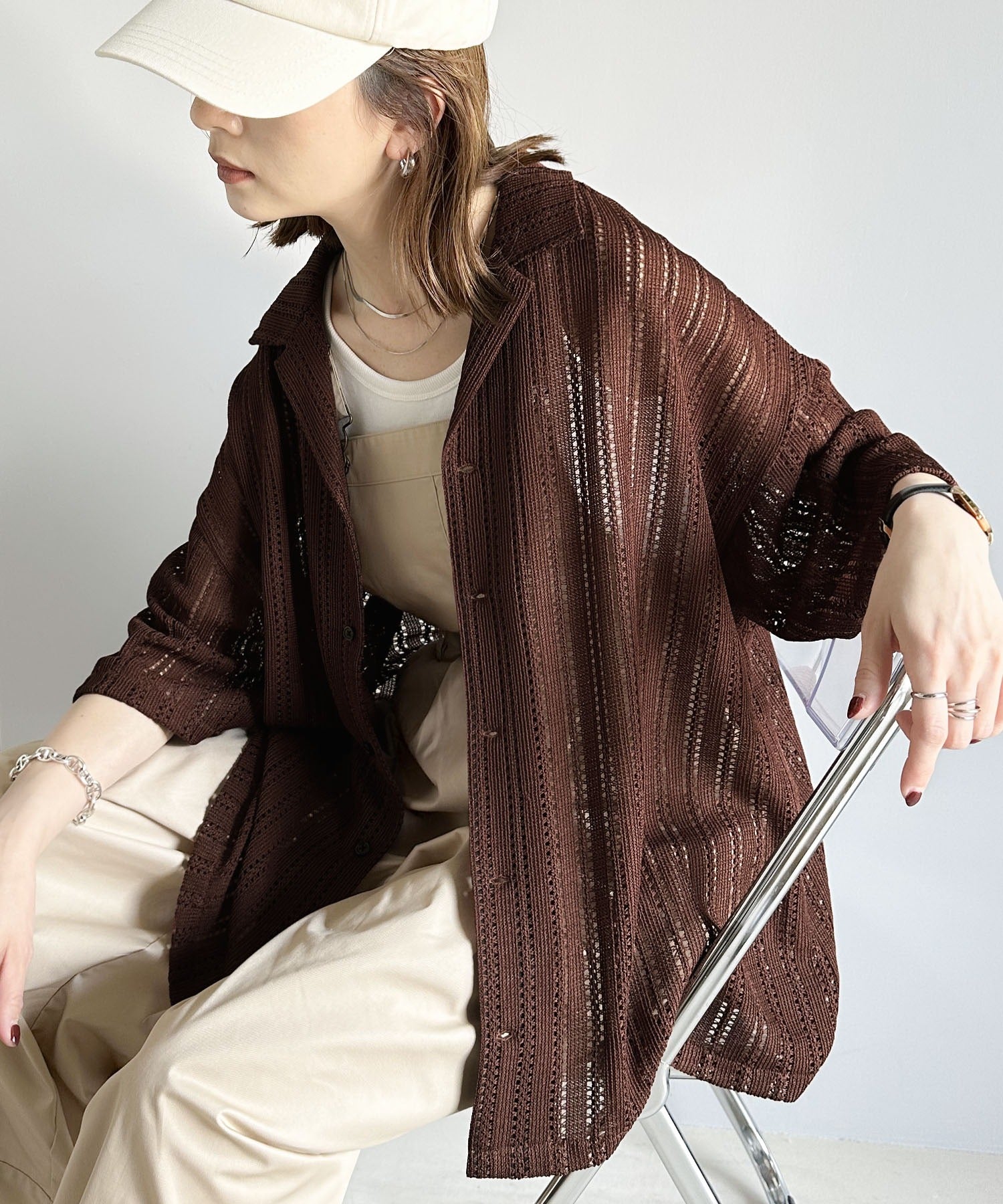 キャミソールやインナーと合わせれば暑い夏にぴったりな涼し気なレイヤードスタイルに。