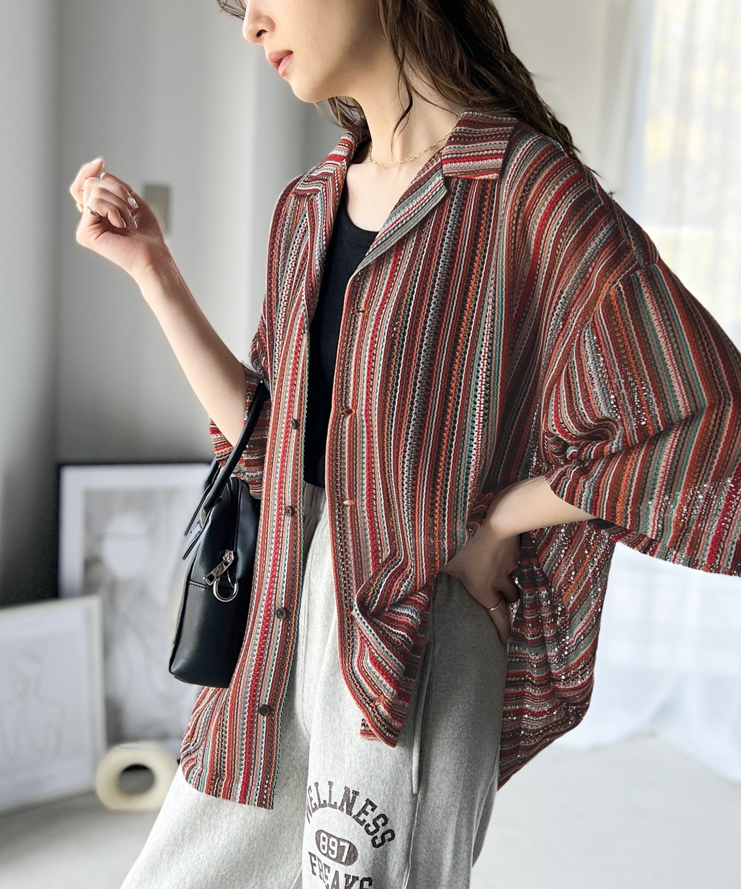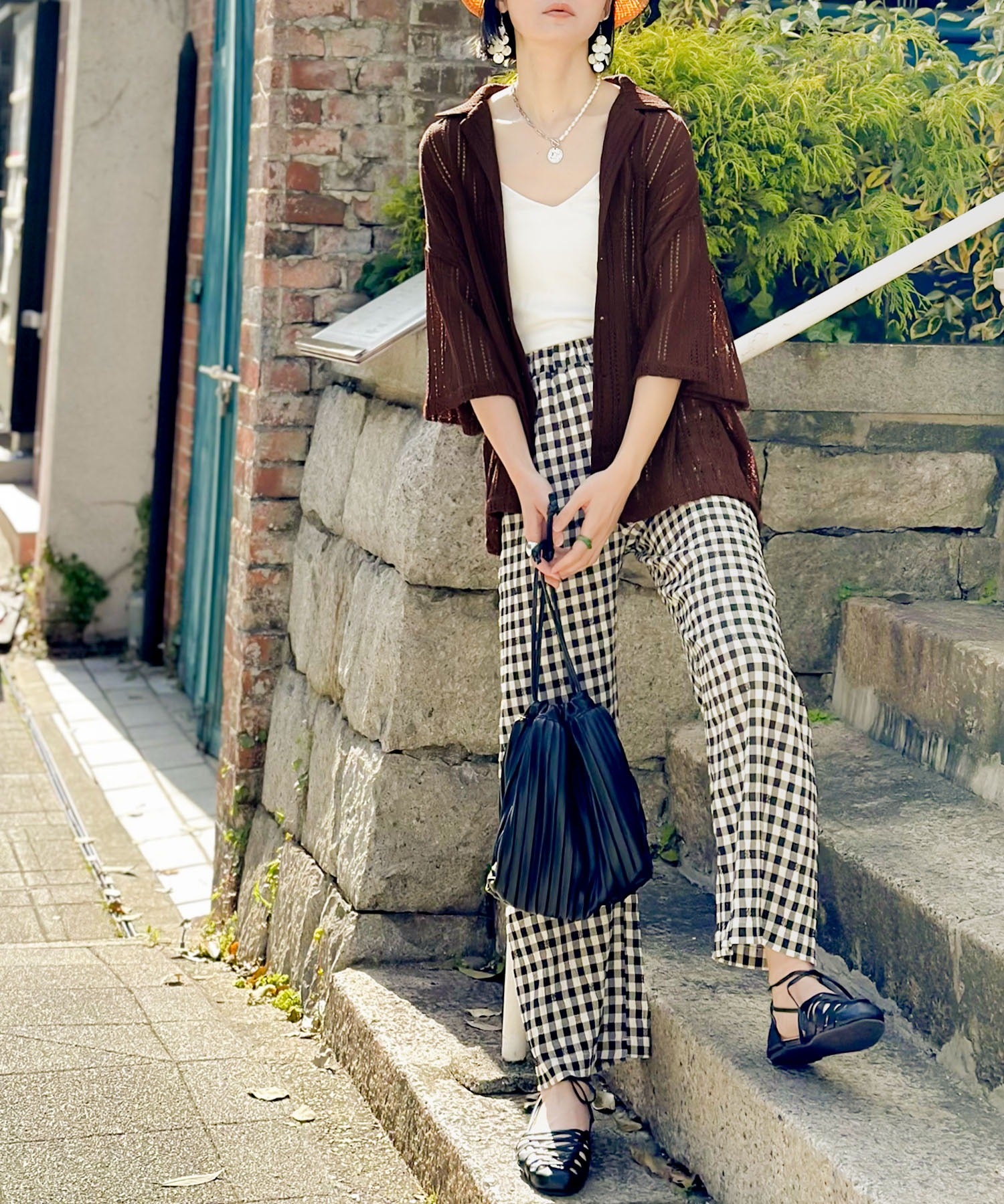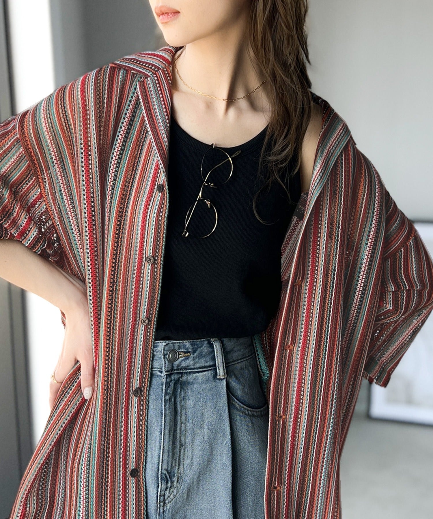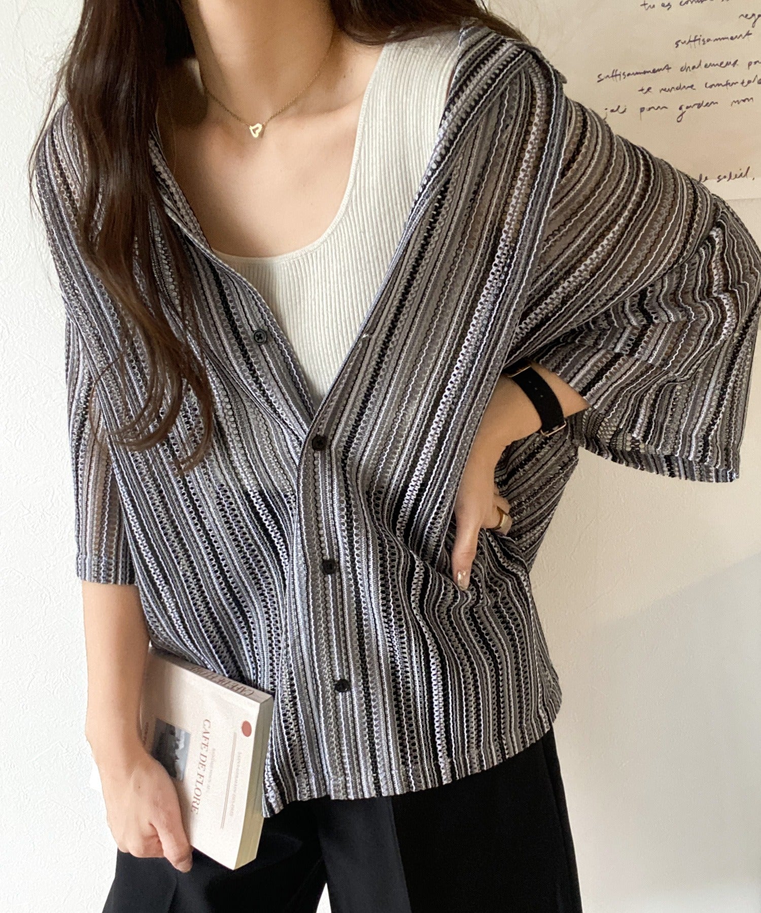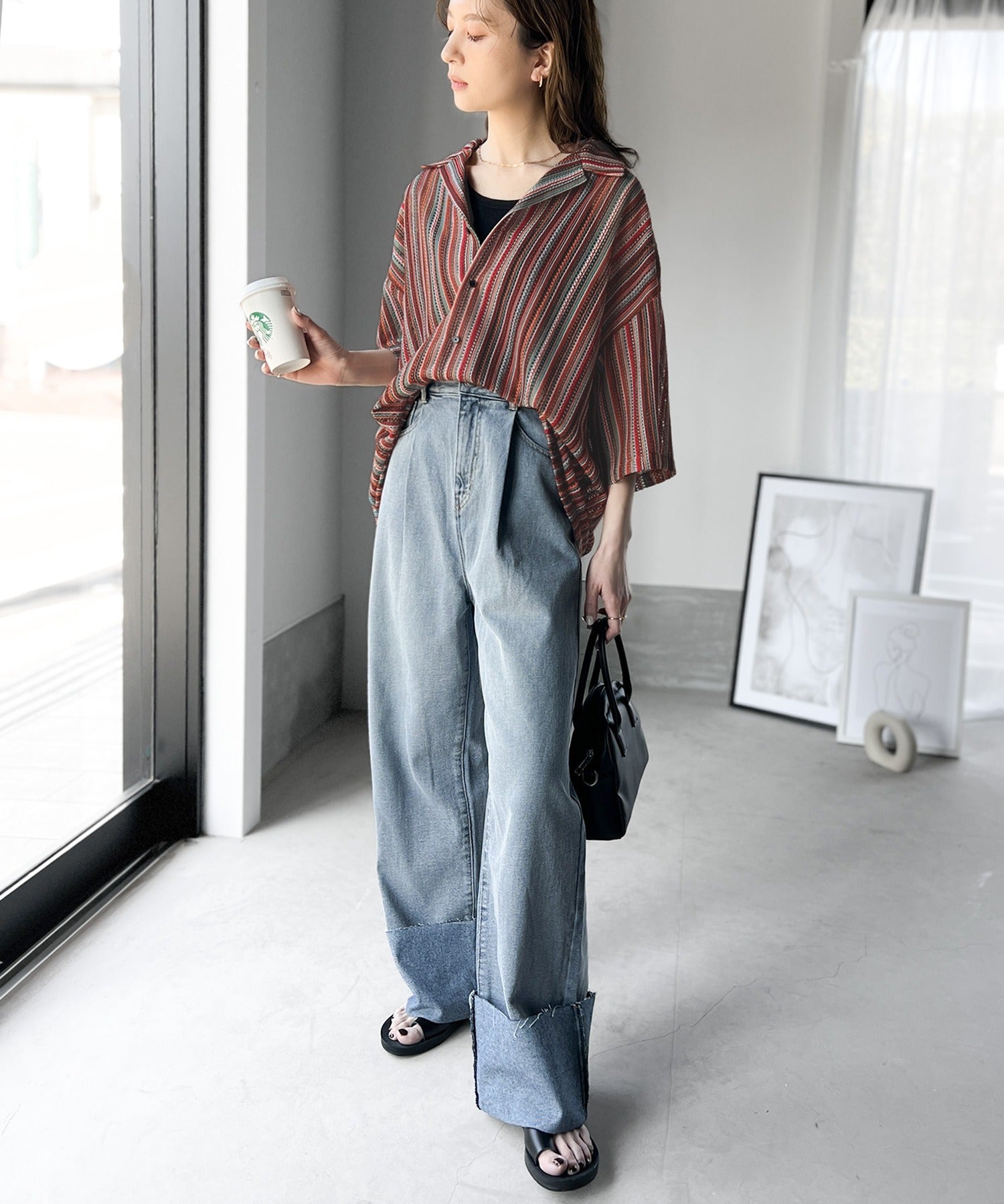 キャミソールやインナーと合わせれば暑い夏にぴったりな涼し気なレイヤードスタイルに。