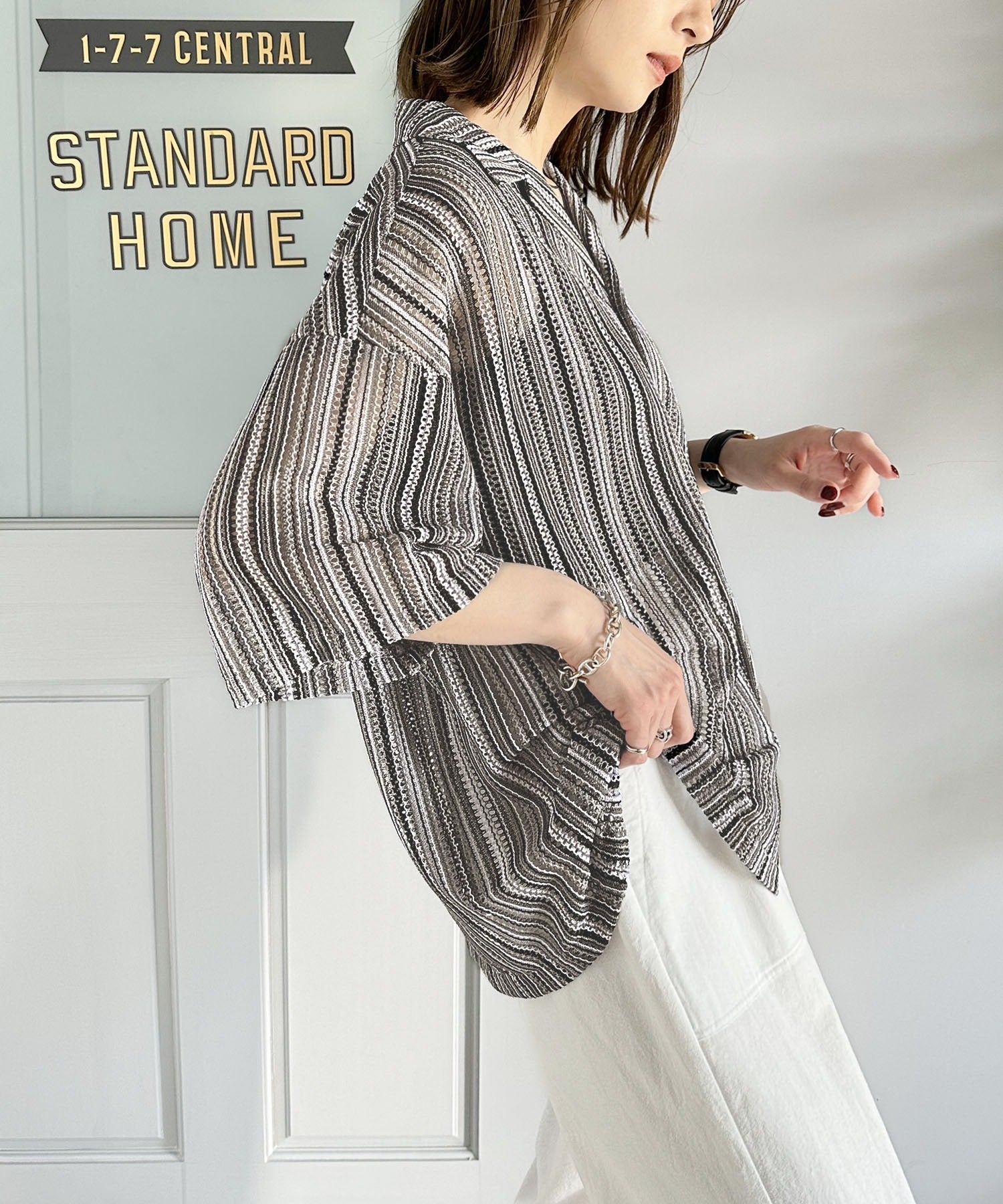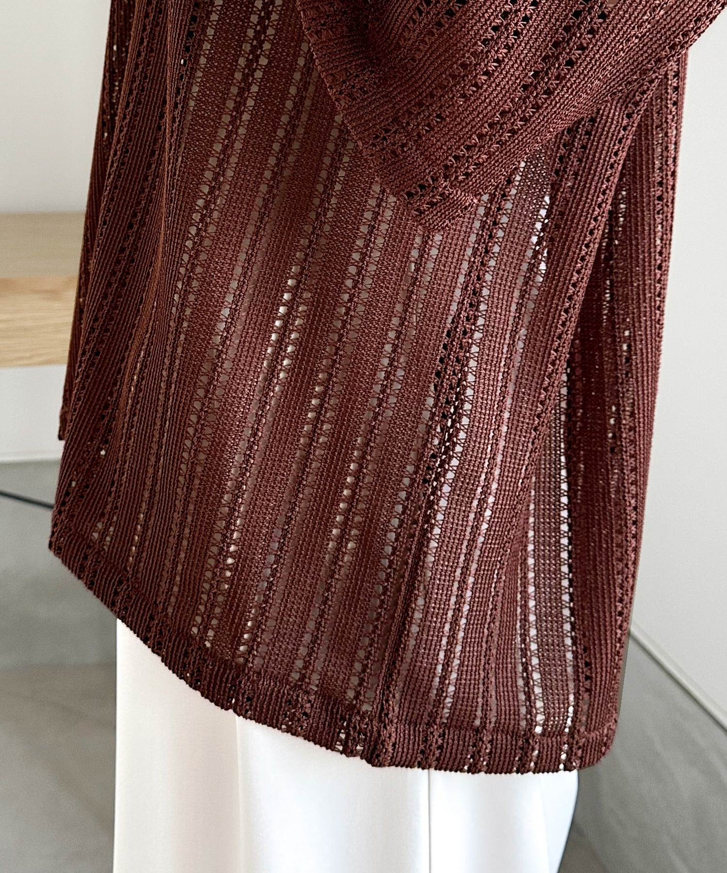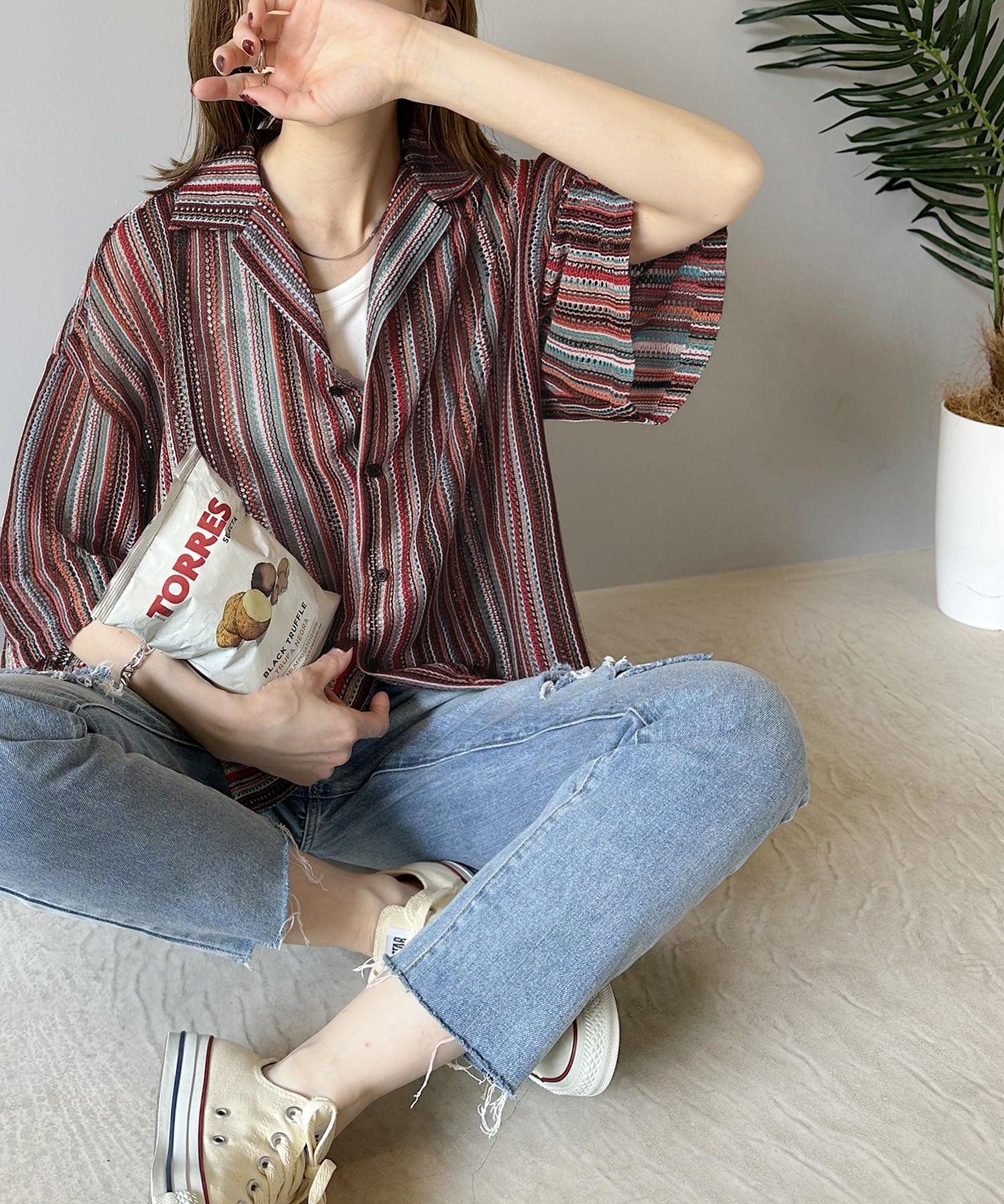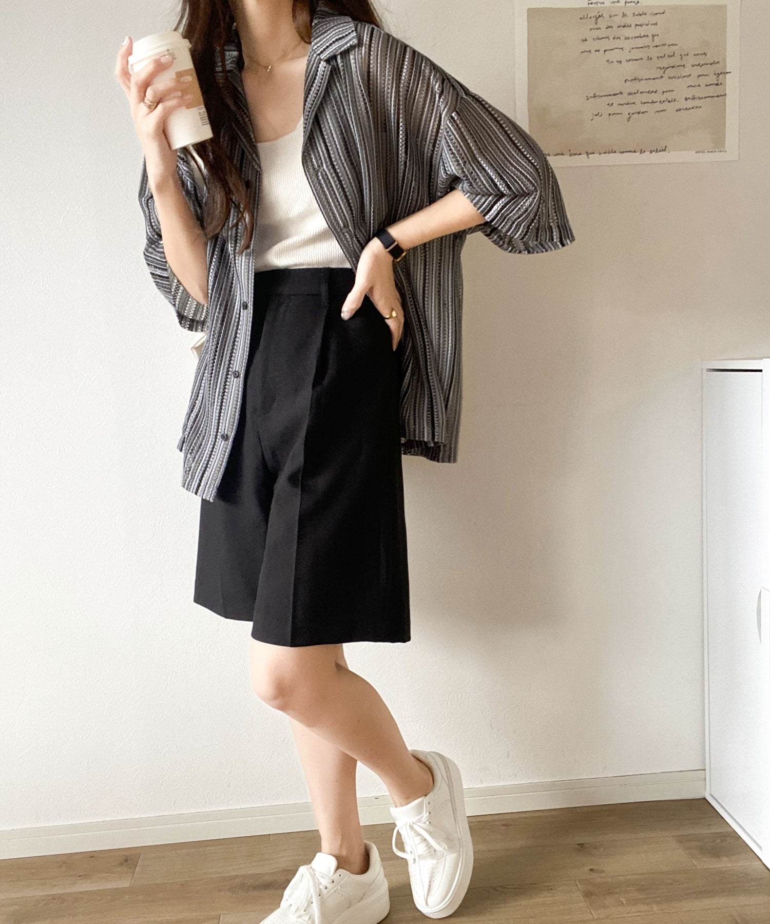 キャミソールやインナーと合わせれば暑い夏にぴったりな涼し気なレイヤードスタイルに。