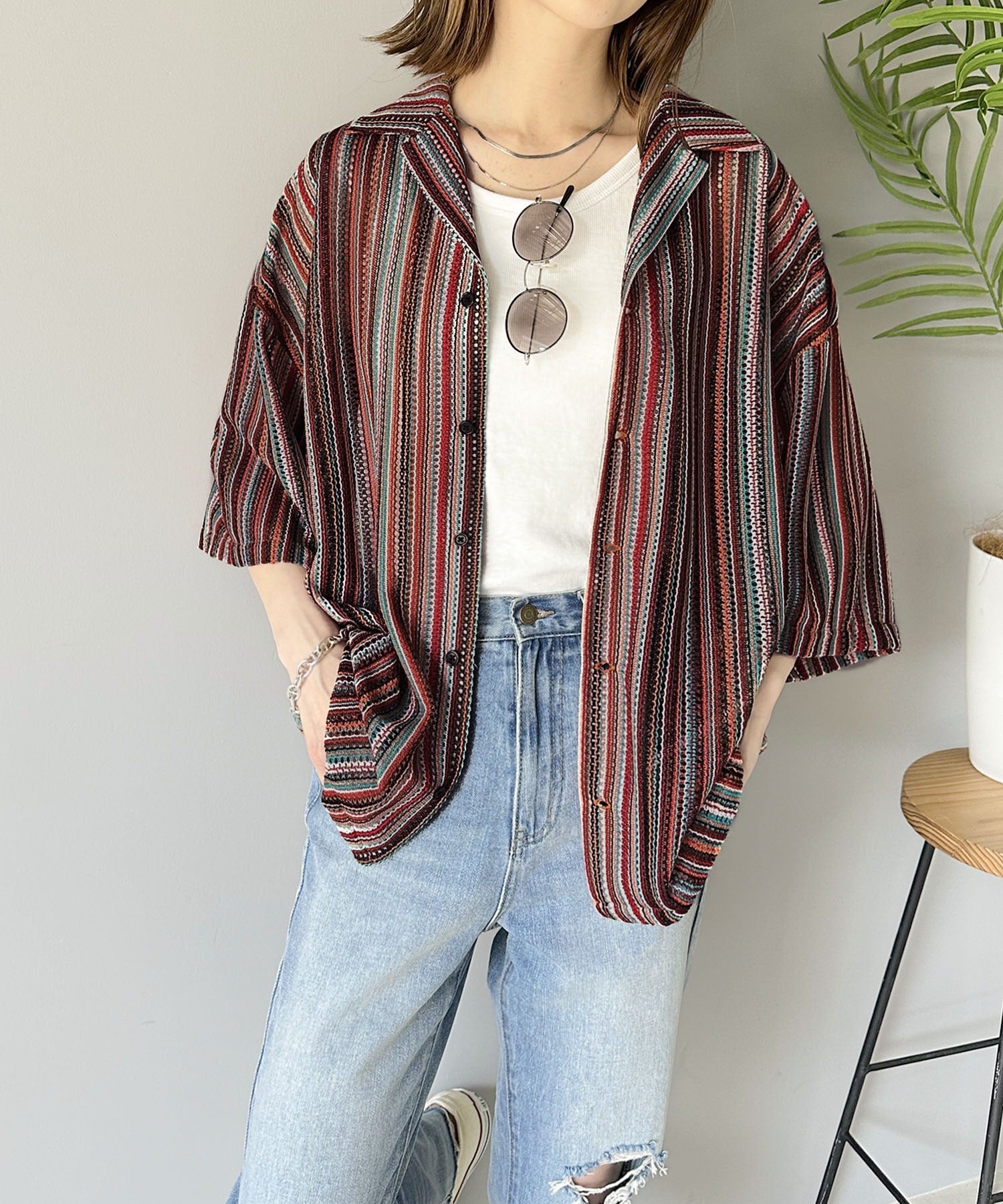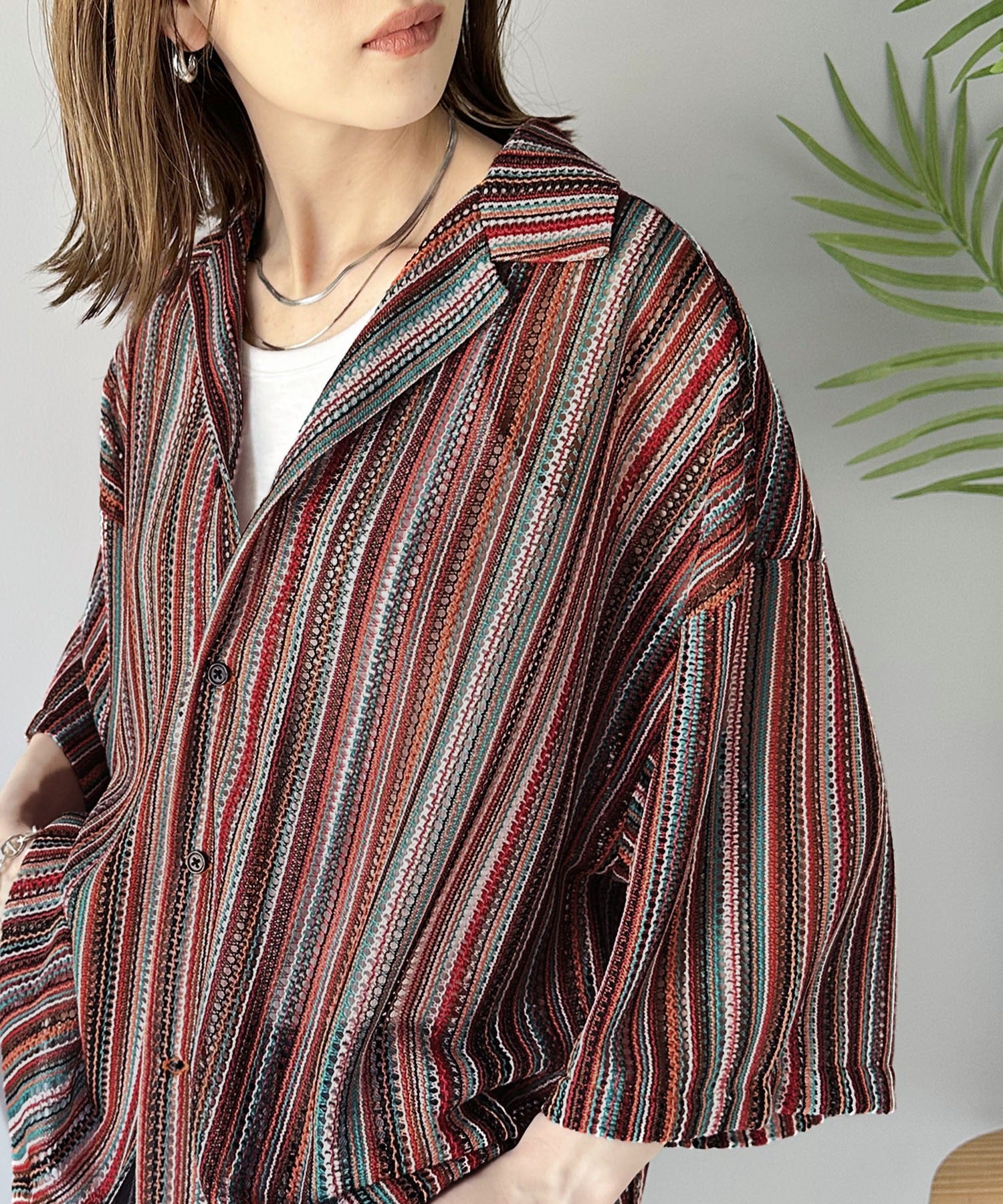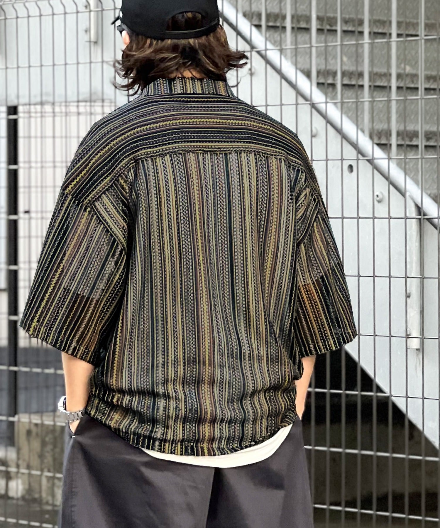 《メンズもお揃いで着れちゃう、レース開襟シャツ》