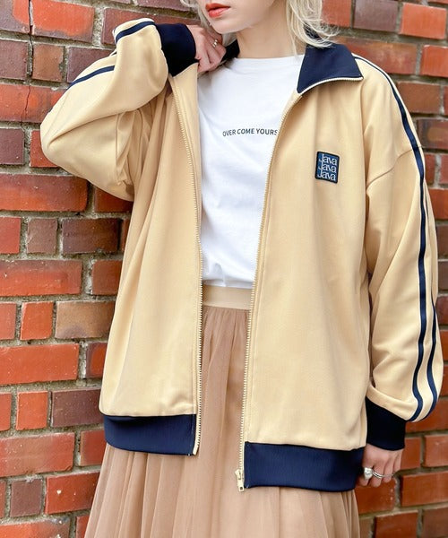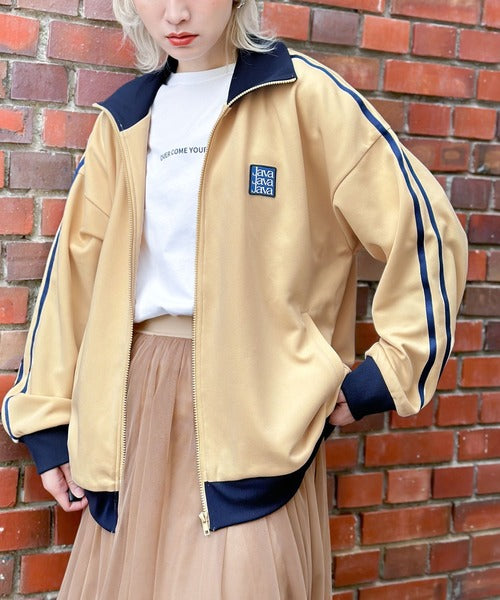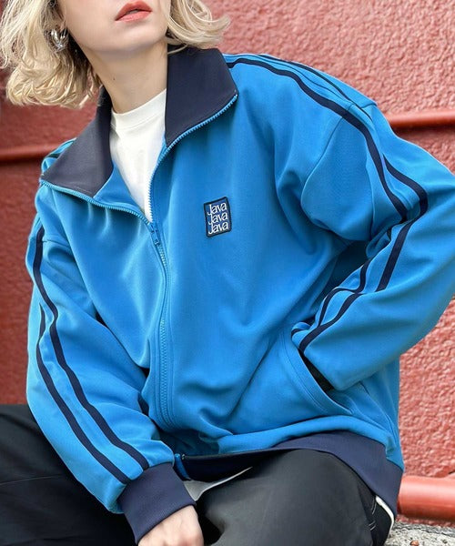 《JaVaジャバ コラボ》レトロ感増す。ジャージ素材ダブルライントラックジャケット jv1029015