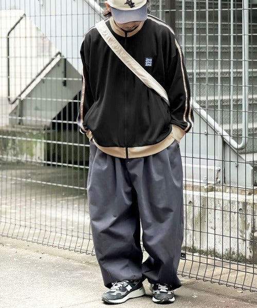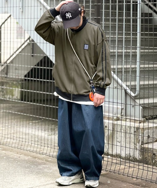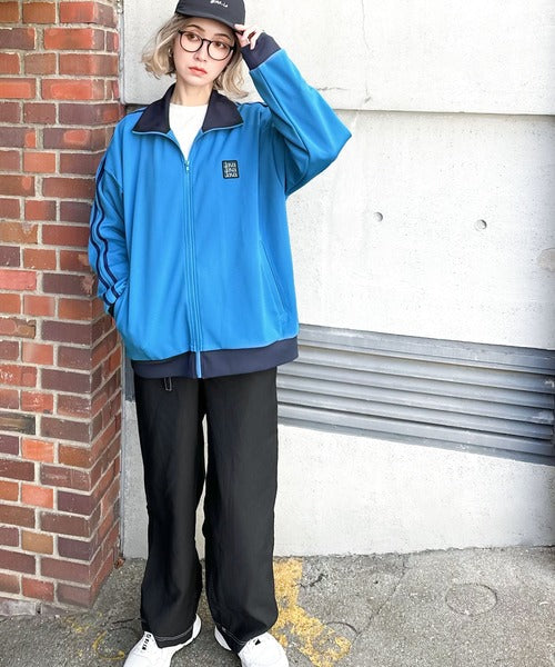 ジャージ素材と袖のダブルラインがレトロな古着ライクに仕上げました。