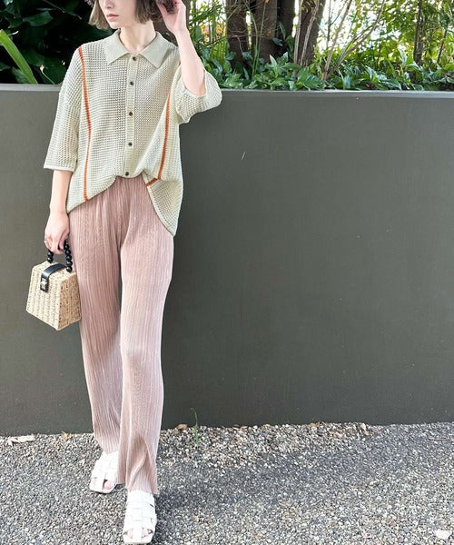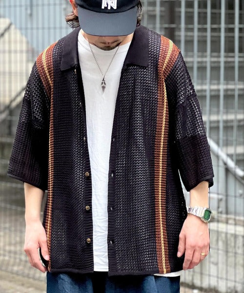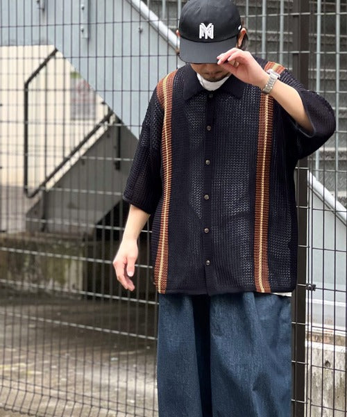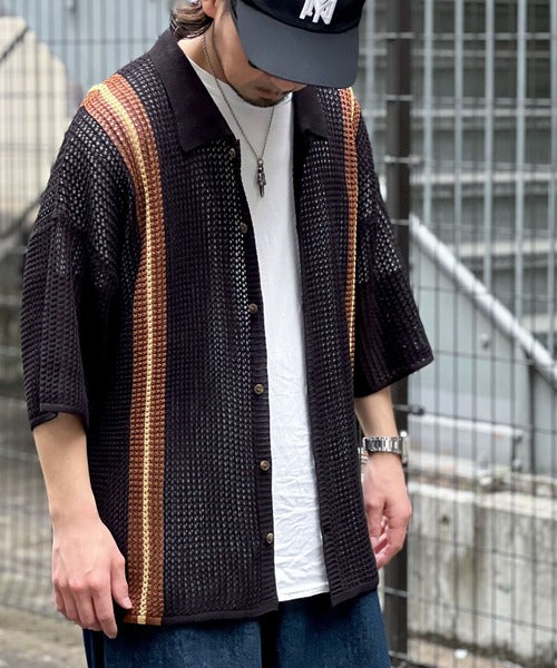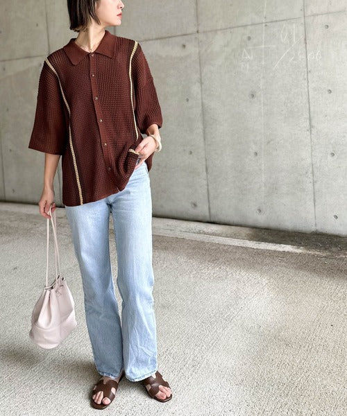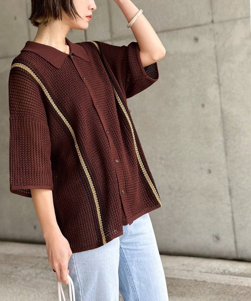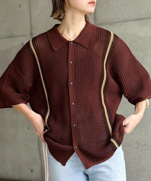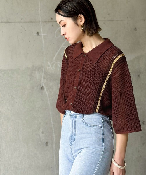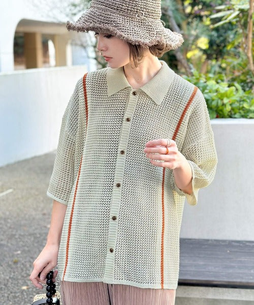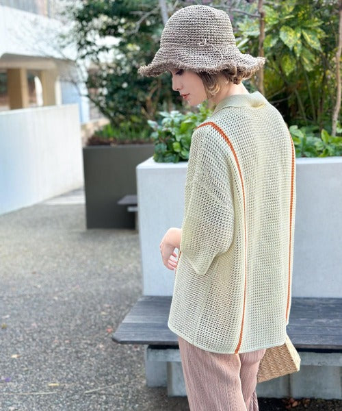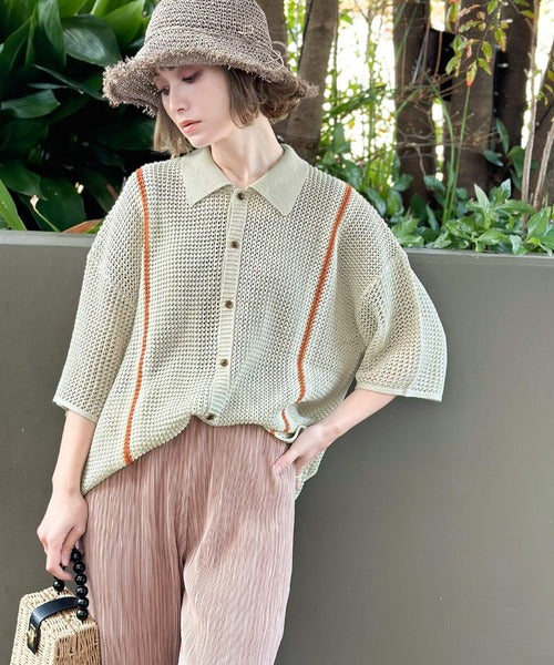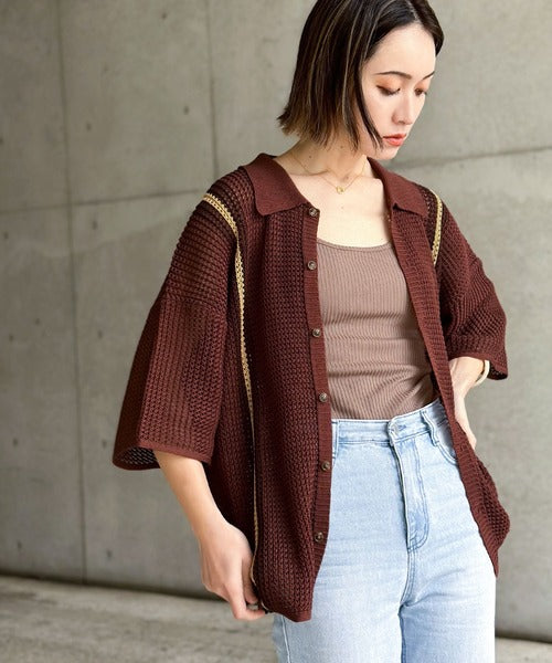 《JaVaジャバ コラボ》レトロヴィンテージ。メッシュ編みニットポロカーディガン jv1029019