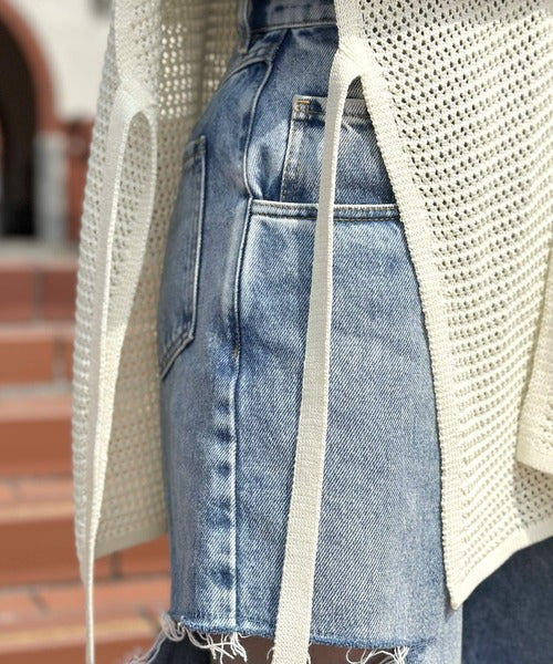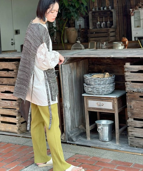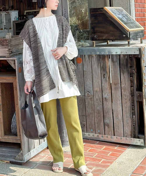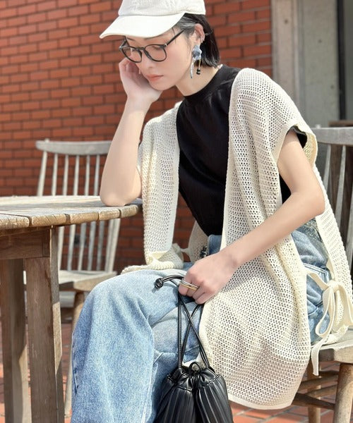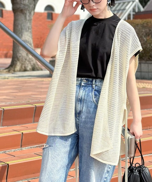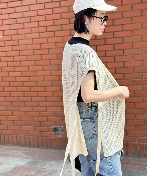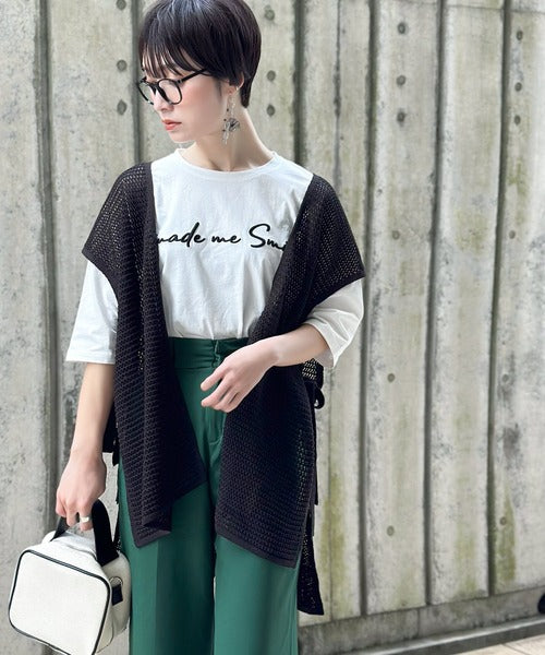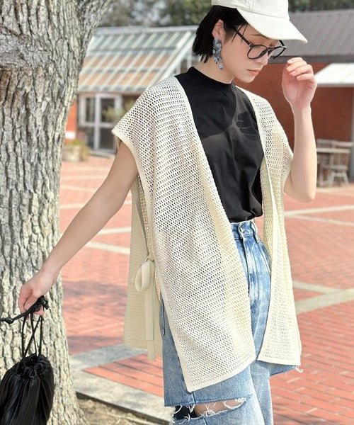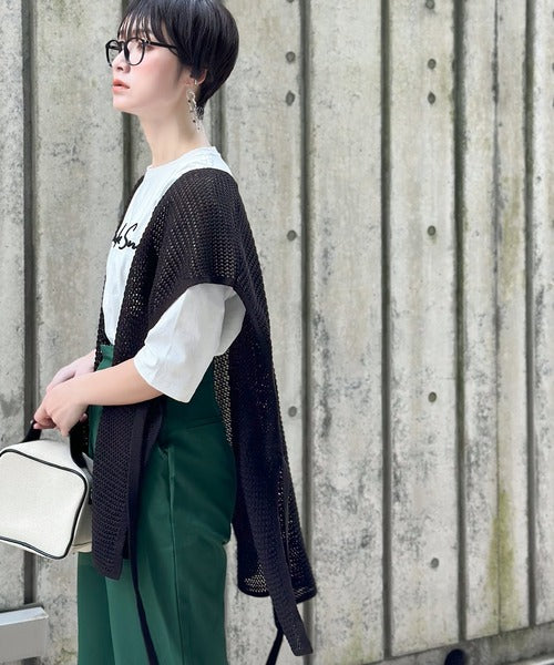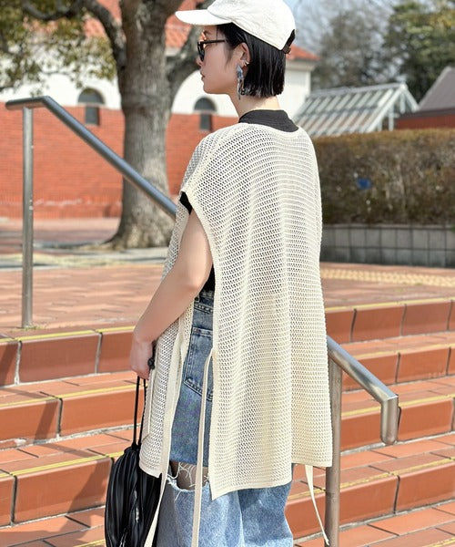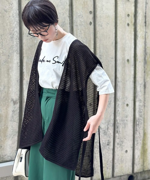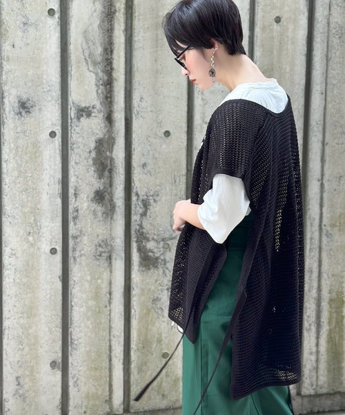 インナーが透ける編み地で、レイヤードを楽しめる1枚。