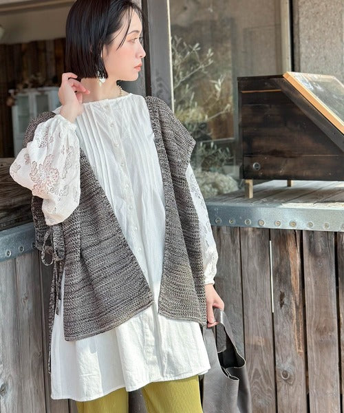 《JaVa ジャバコラボ》1枚で即、トレンド感。かぎ針風ジレニット jv1029025
