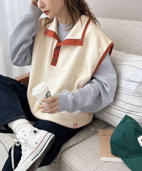 《JaVa ジャバ別注》劇的にアカ抜け!あったか配色フリースベスト jv1050070