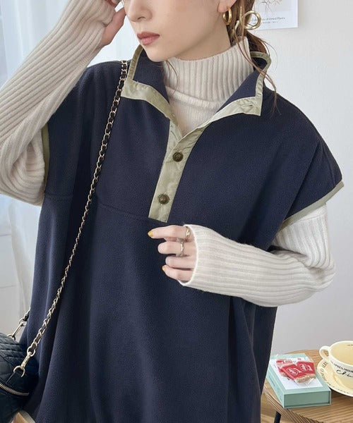ゆったりとしたボリュームのあるプルオーバーベストなので