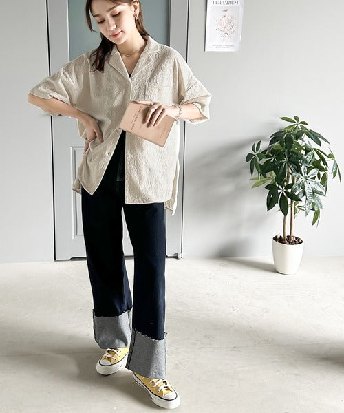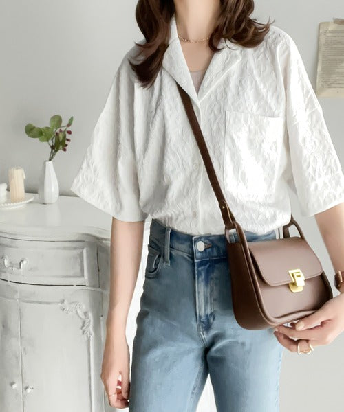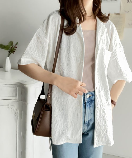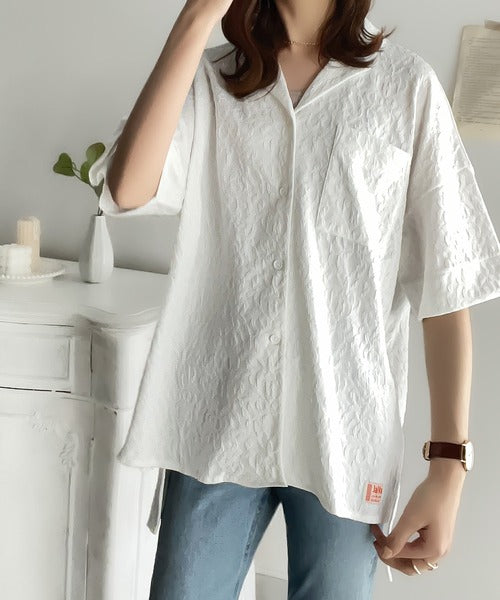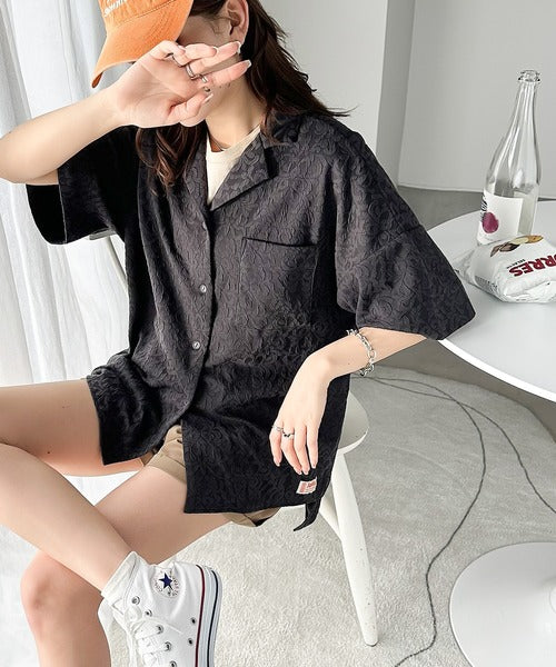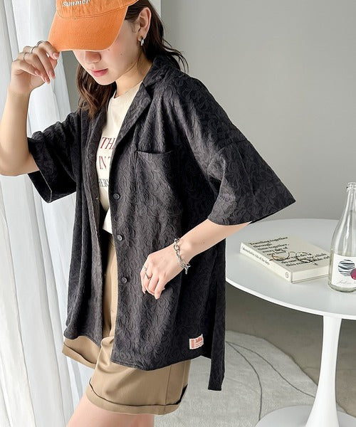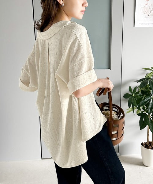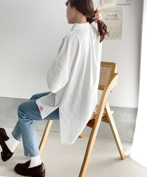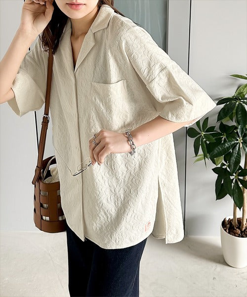 表面の立体感と、レトロなジャガード柄が魅力のメンズライクシャツ。