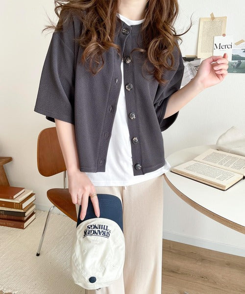 今年らしいクロップド丈が新鮮な2wayリブカーディガン。