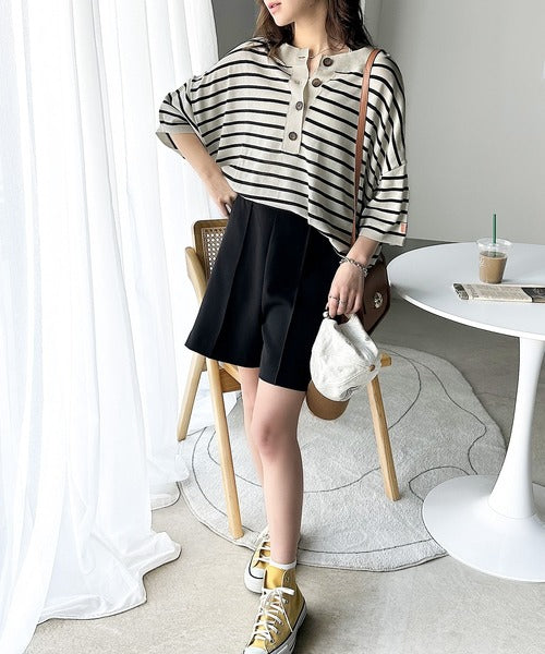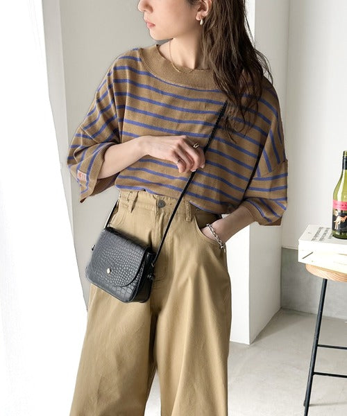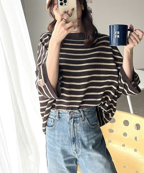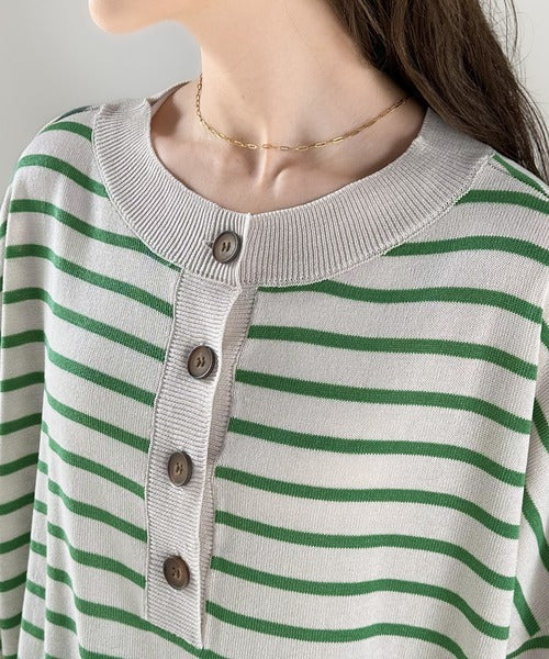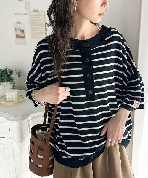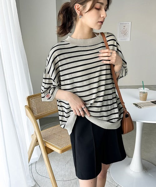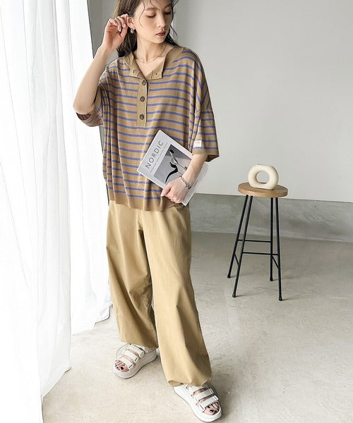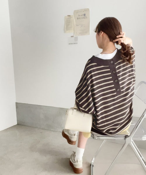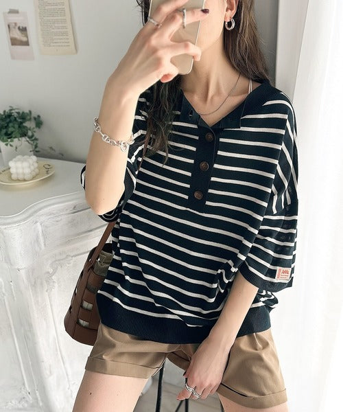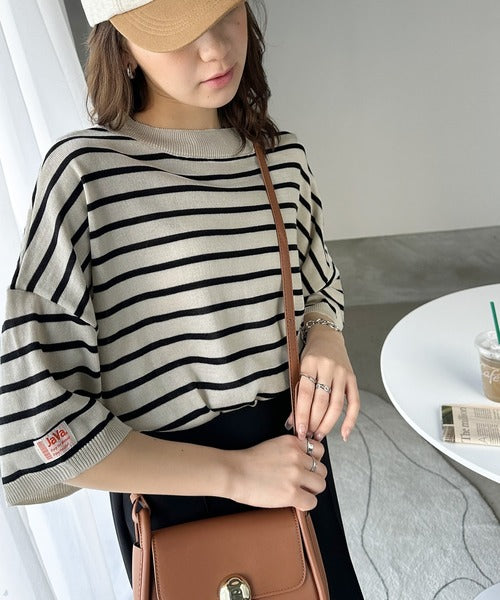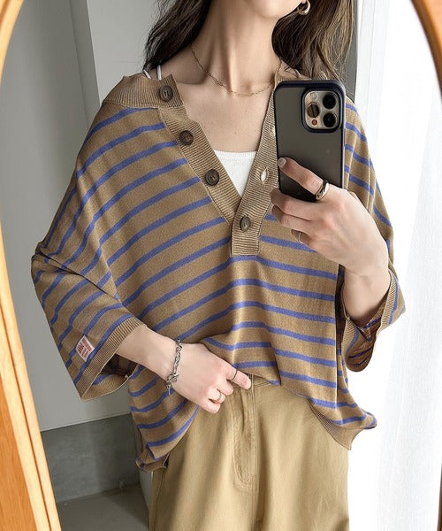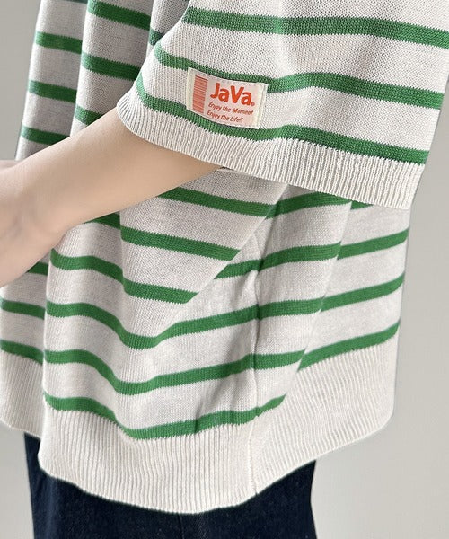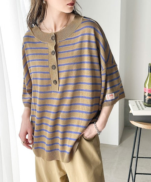 《JaVa ジャバコラボ》さらっとお洒落。2wayヘンリーネックボーダーサマーニット jv1050083
