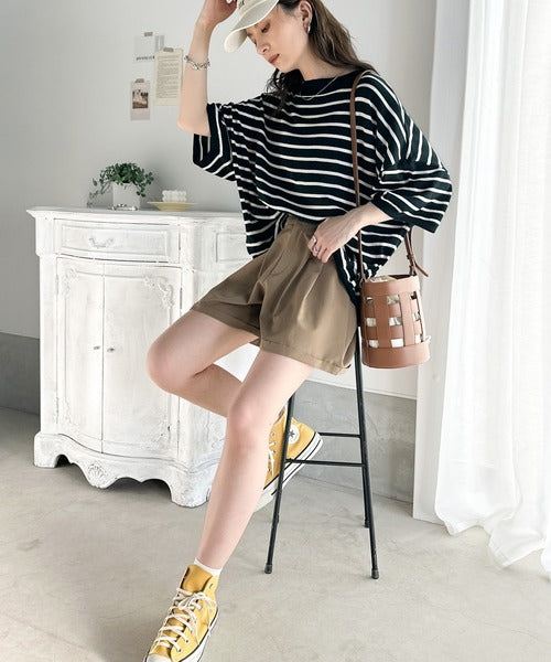 レトロ感のあるボーダー柄が大人らしい抜け感を演出します。