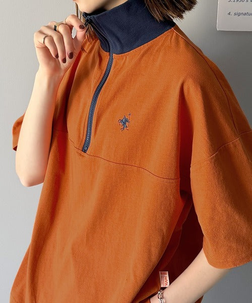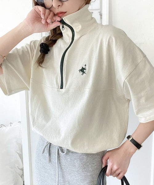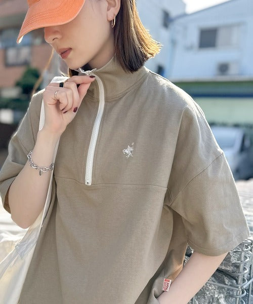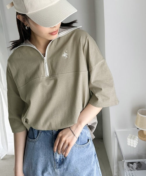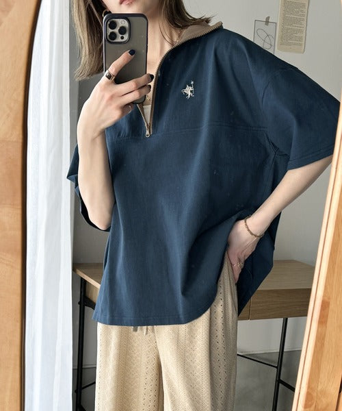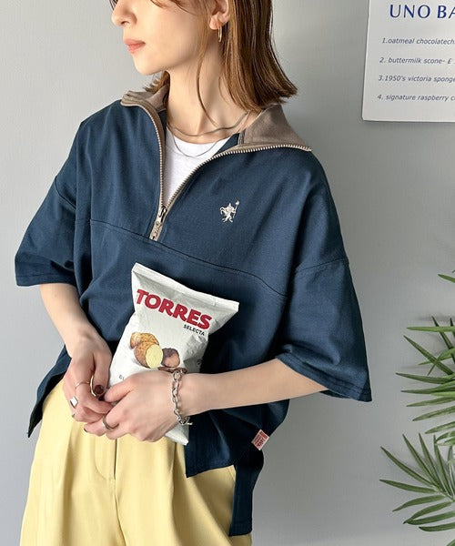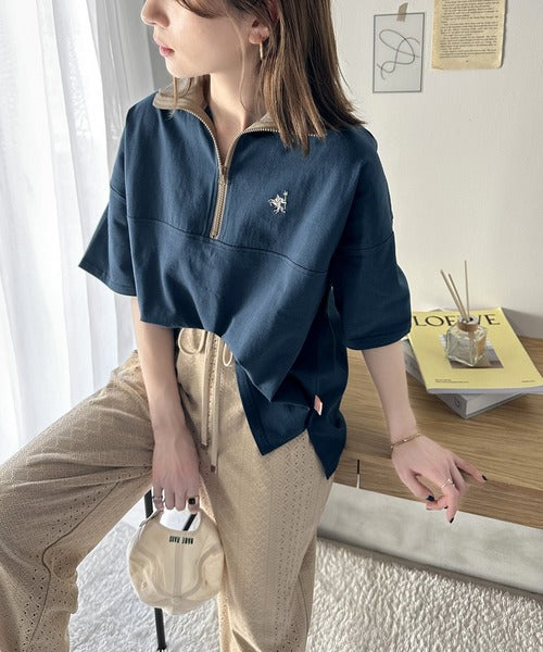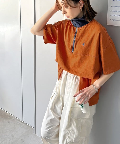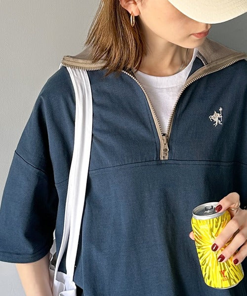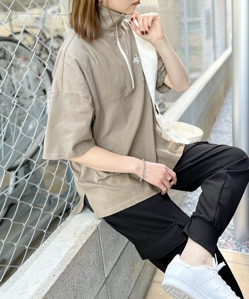 ハーフジップが大人のカジュアル感も演出。