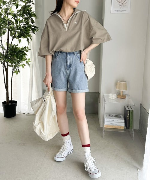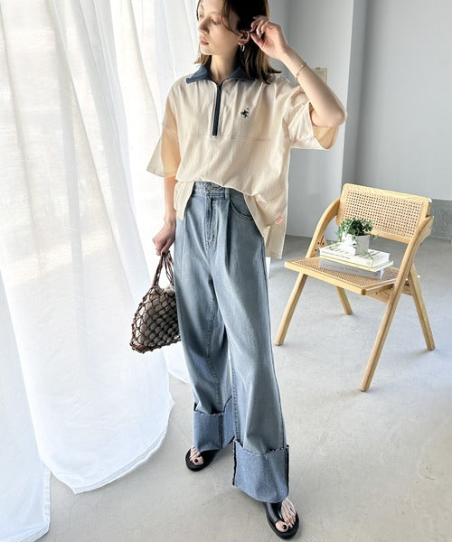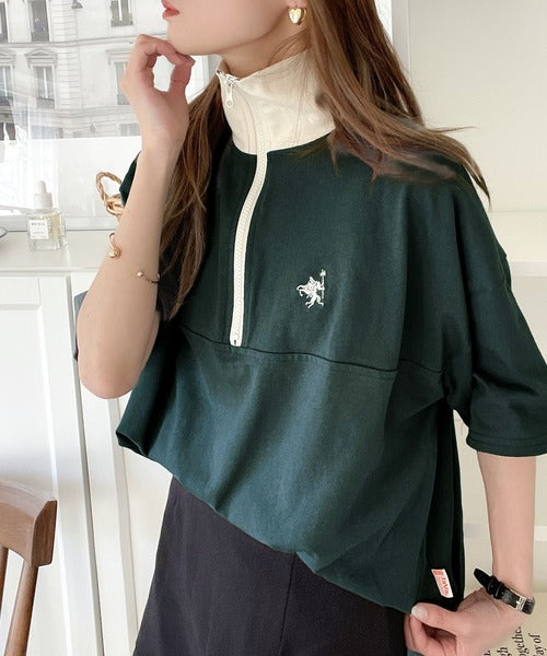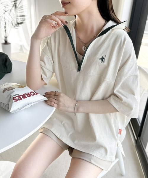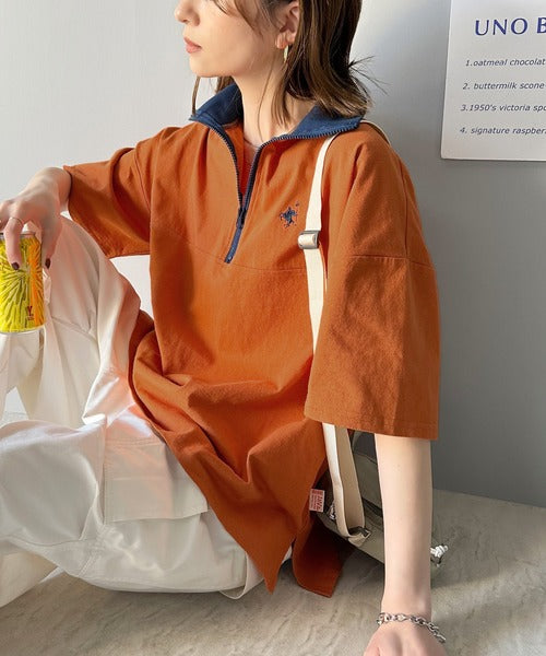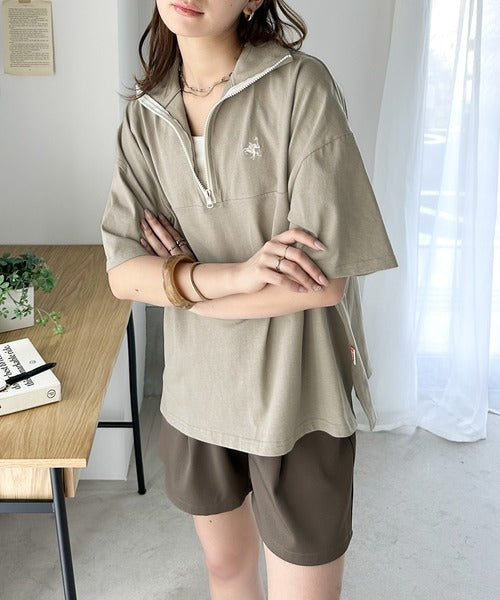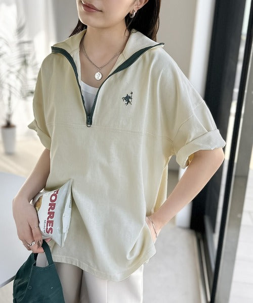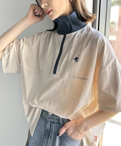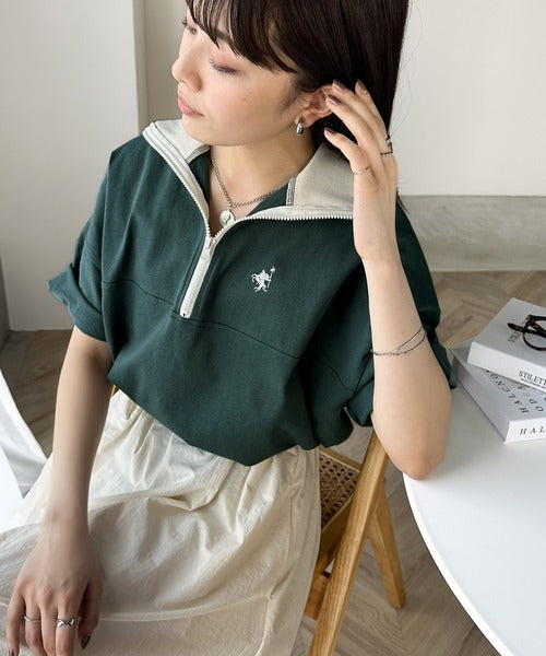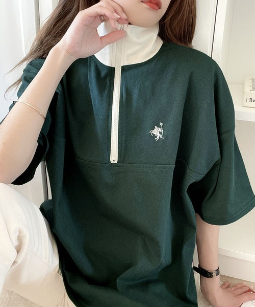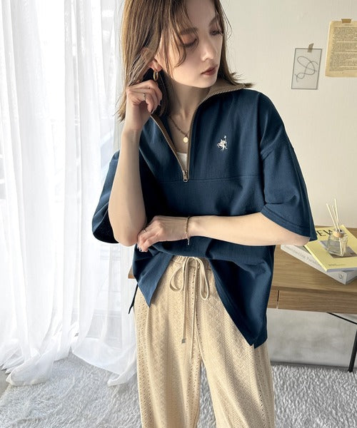 ハーフジップが大人のカジュアル感も演出。