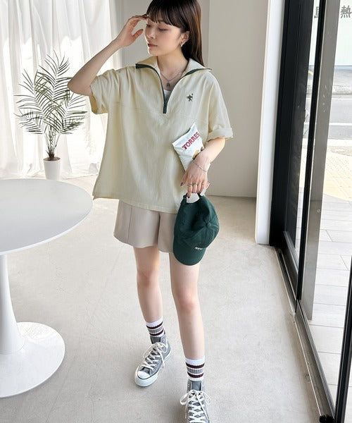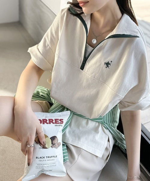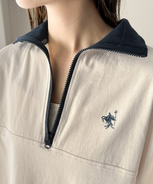 配色パイピングが目を惹くハーフジップデザイン。