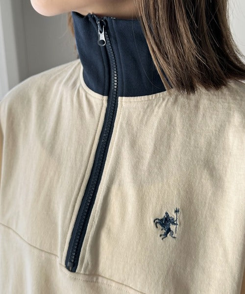 トレンド要素を落とし込んだ配色ハーフジッププルオーバー。