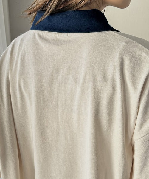 《JaVa ジャバコラボ》技あり大人コーデ。綿100%配色ハーフジッププルオーバー jv1050086
