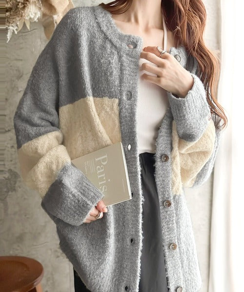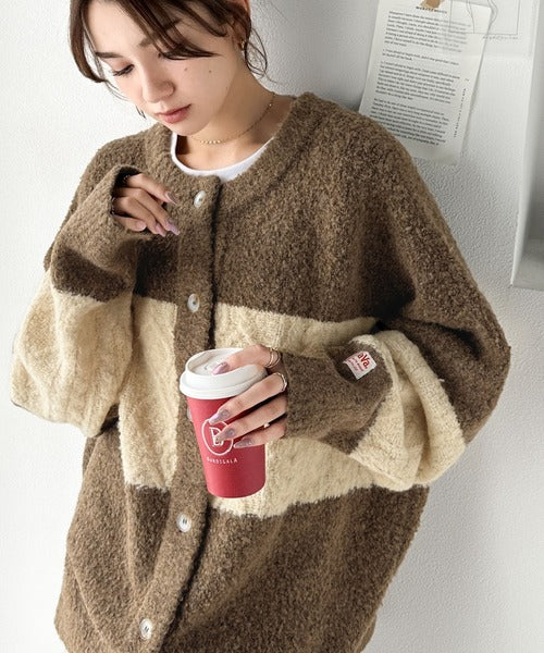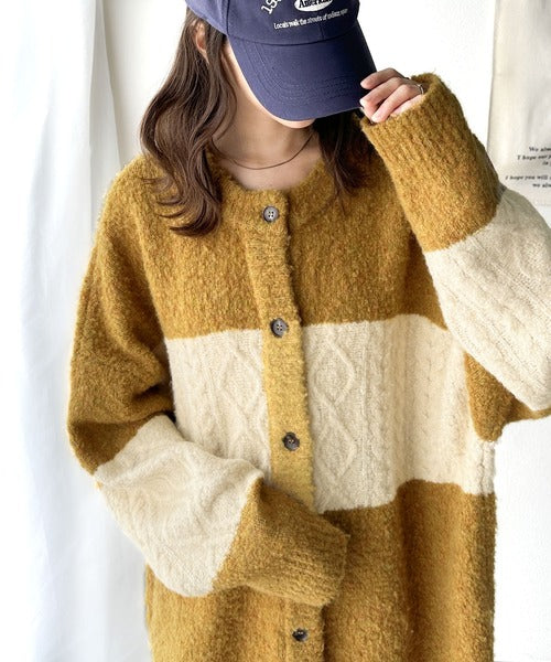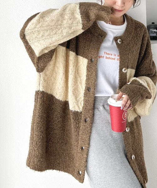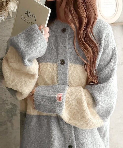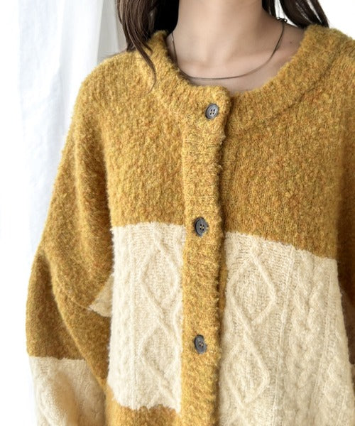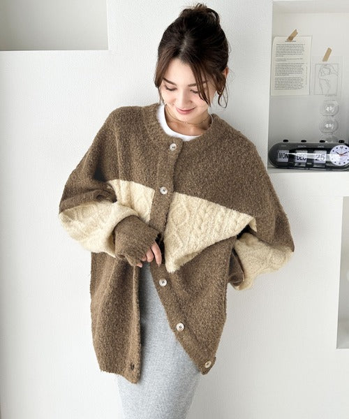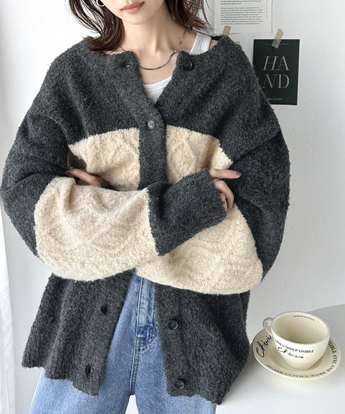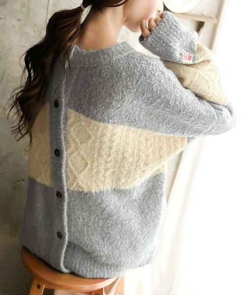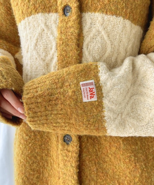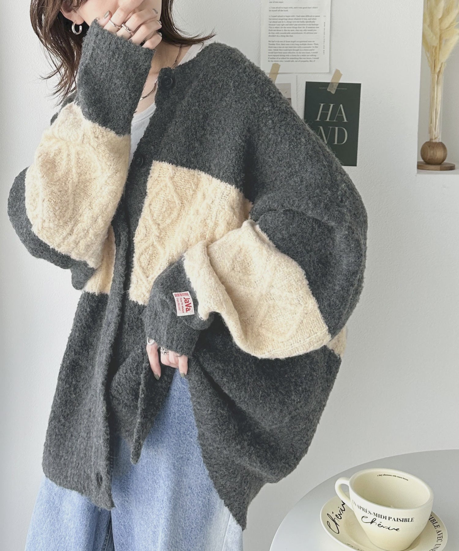 《JaVa ジャバコラボ》【sustaina+】洗練された大人カジュアルニット 2wayケーブル切替配色カーディガン jv1050107