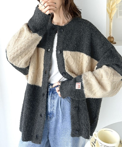 風合いが良く、ふわふわのブークレ糸を使用した男女兼用できるカーディガン。