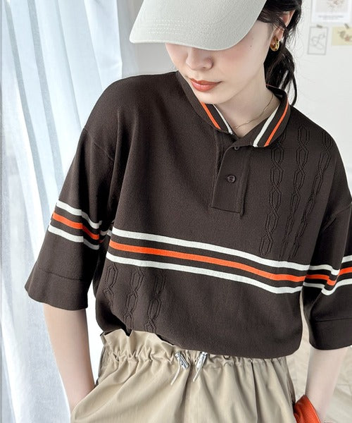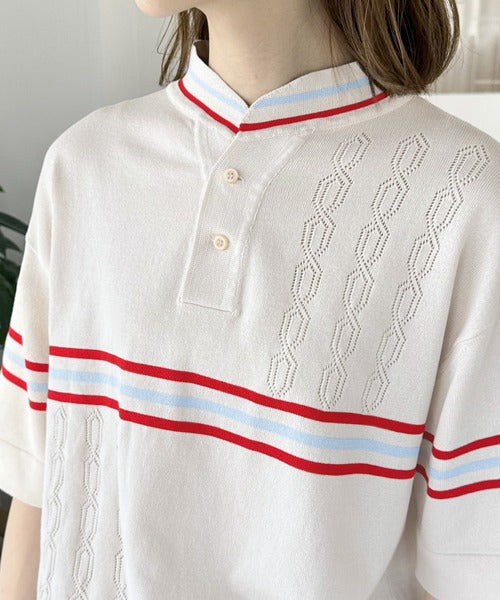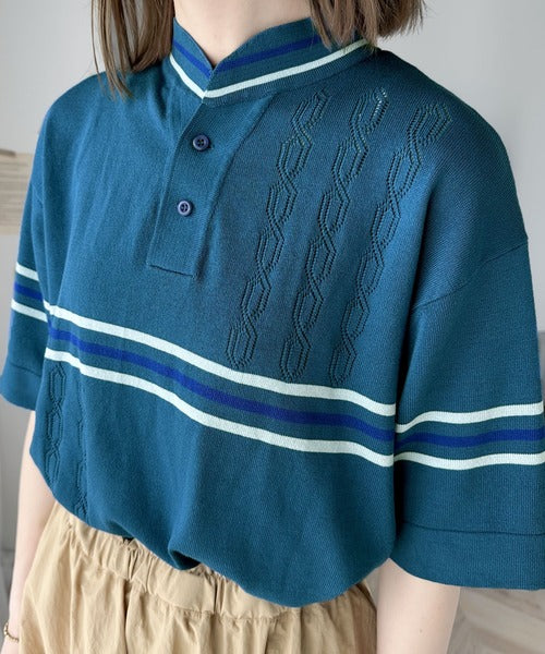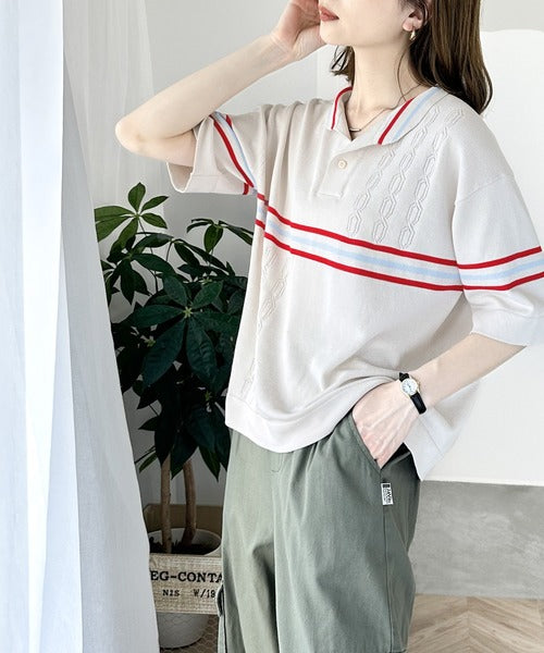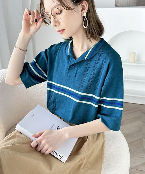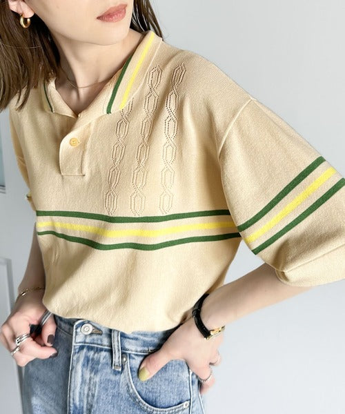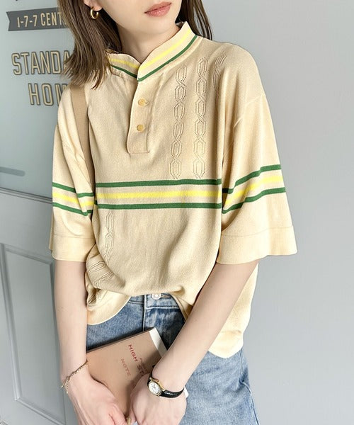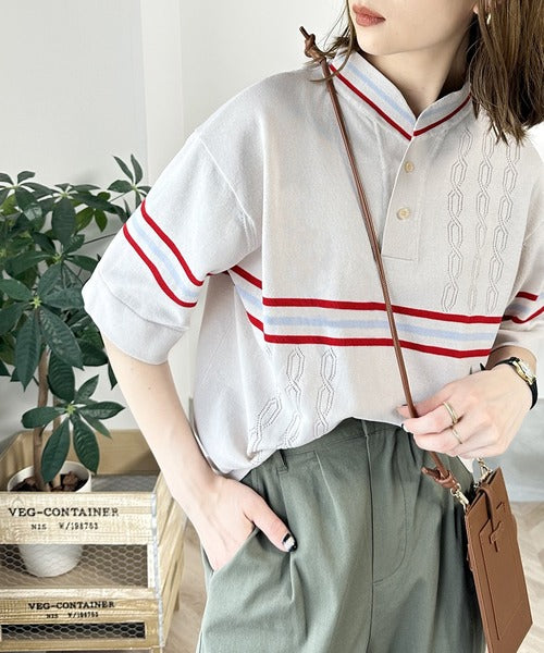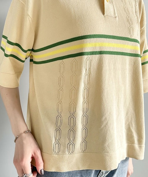《JaVaジャバ 別注》大人のヴィンテージライク。レトロボーダーニットトップス jv1050112
