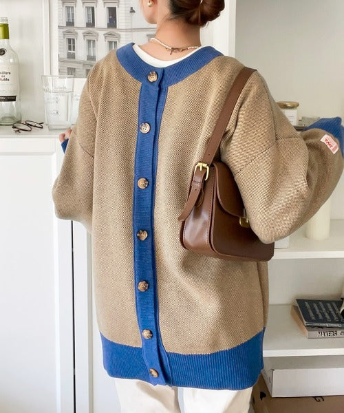 《JAVAジャバ 別注》シンプルにお洒落。マルチウェイ ジャガード配色カーディガン jv1050126