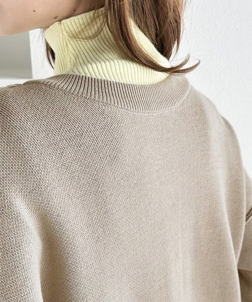 絶妙な丈感で、インナーにシアー素材のハイネックを覗かせたレイヤードスタイルも◎