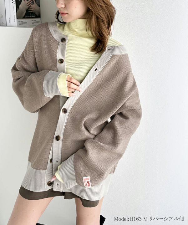 こなれ感のあるレトロな配色ジャガード柄Ver.の2通りの着こなしを楽しめちゃうリバーシブル♪