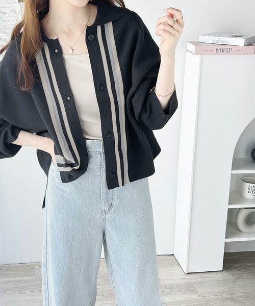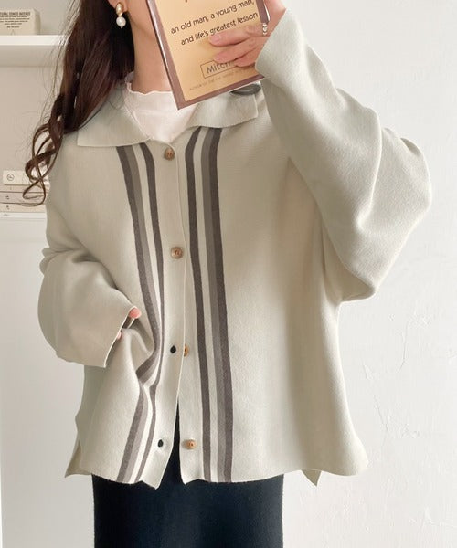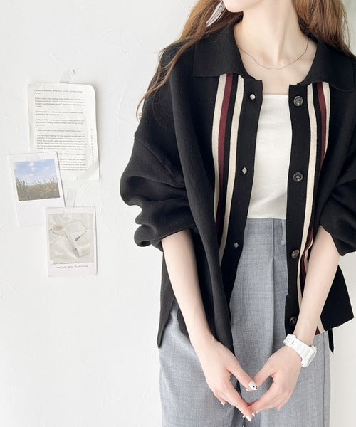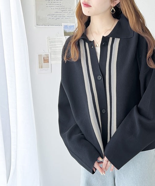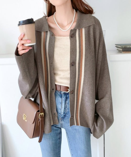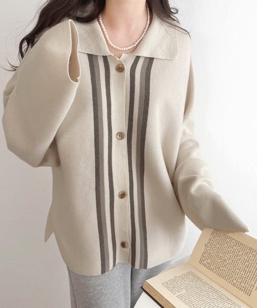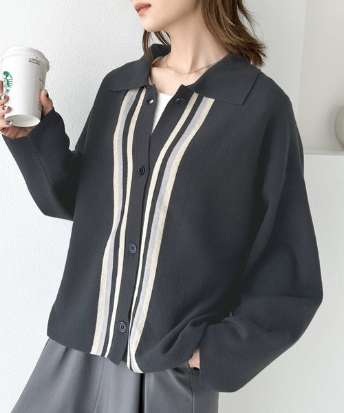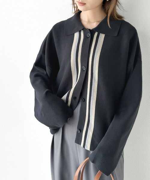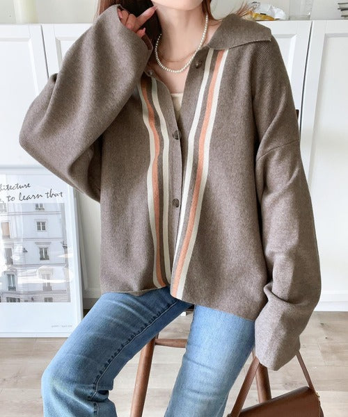 ロングシーズン着用できて、飽きのこない襟付きニットカーディガンです。