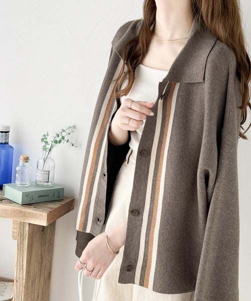 ヴィンテージ感漂う配色使いがポイントのニットシャツカーディガン。