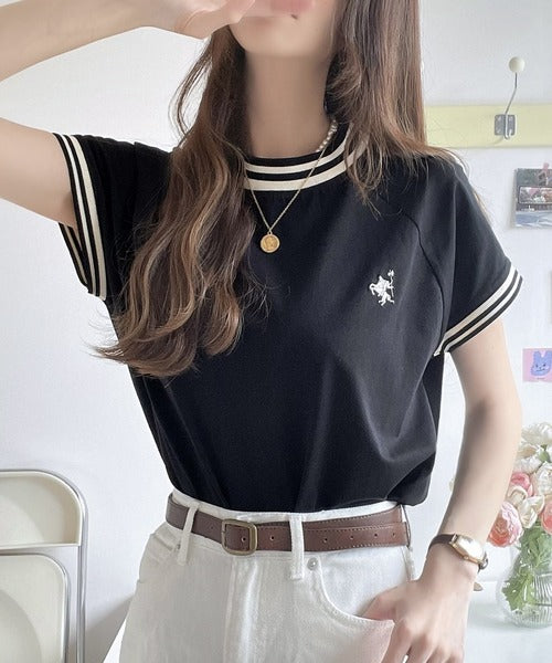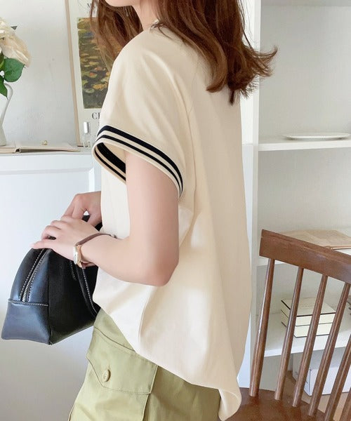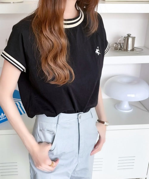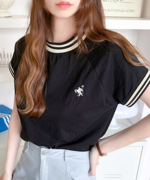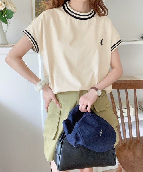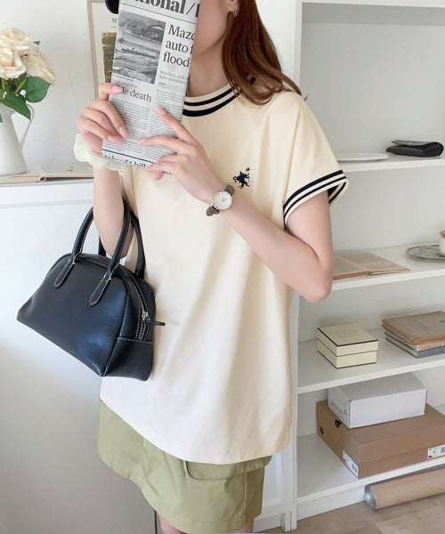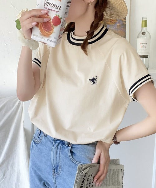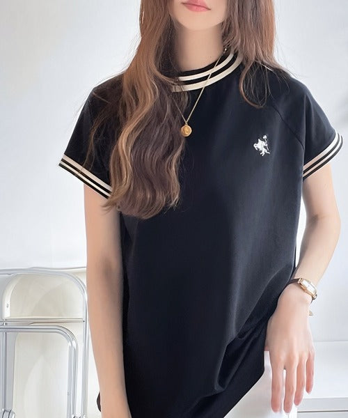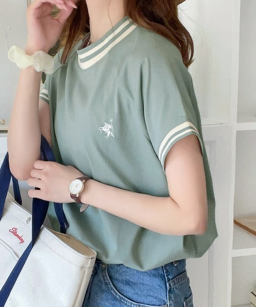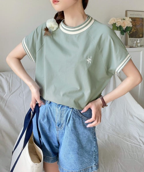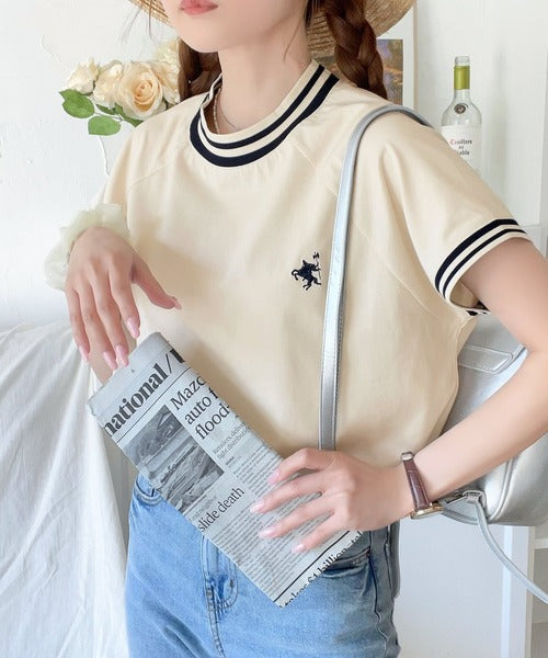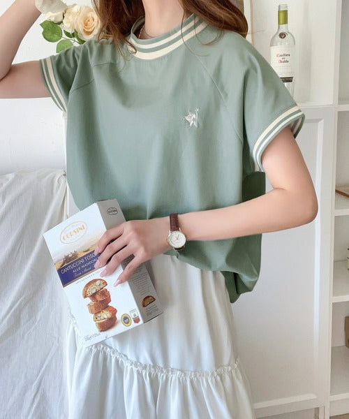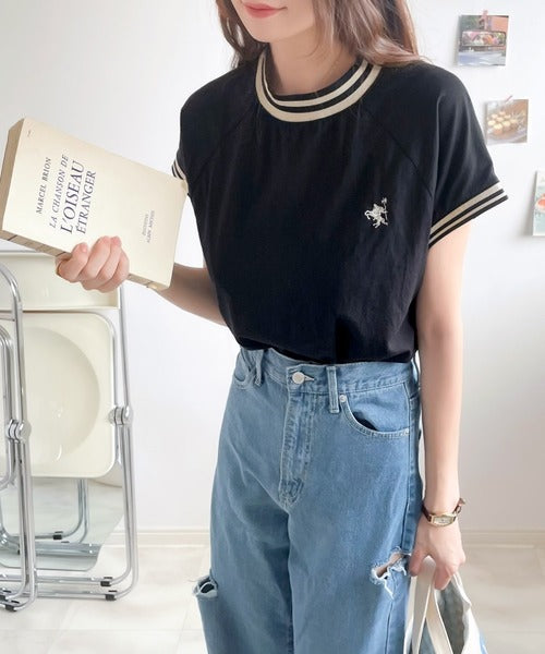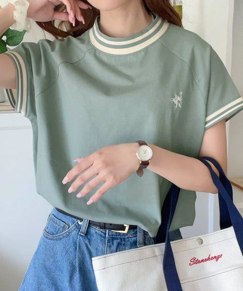 《JaVa ジャバコラボ》大人の上品レトロ。シルケット 配色刺繍フレンチT jv1050129