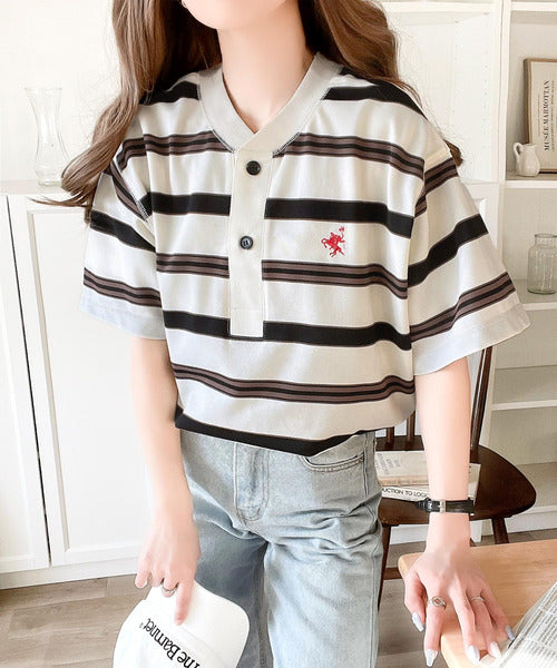 ヴィンテージの古着から着想を得たデザインを散りばめ、衿元の抜け感をプラスすることで今っぽいトップスに仕上げました。