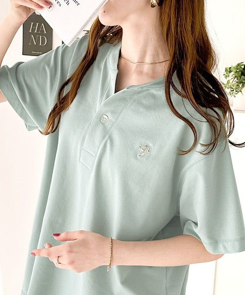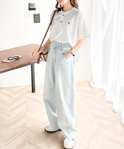 だぼっと着られるワイドシルエットや胸元のワンポイント刺繍など、トレンド感たっぷりに仕上げました。