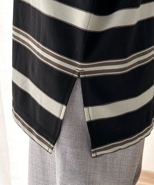 【素材】 【グリーン/グレージュ/オフホワイト】本体:綿60%、ポリエステル36%、ポリウレタン4% リブ部分:綿96%、ポリウレタン4% 【ベージュボーダー/ブラックボーダー】本体:綿50%、ポリエステル47%、ポリウレタン3% リブ部分:綿96%、ポリウレタン4%