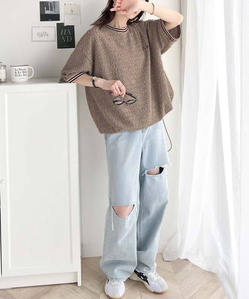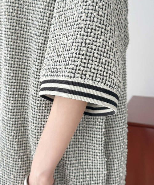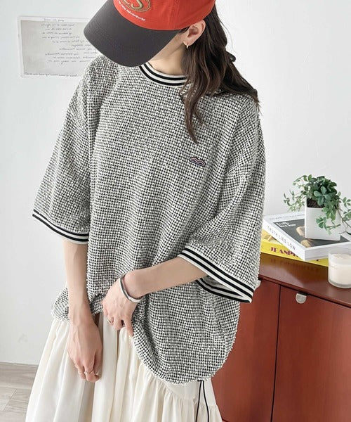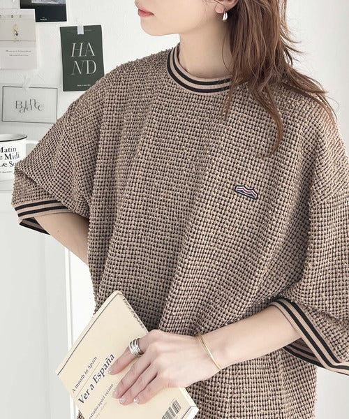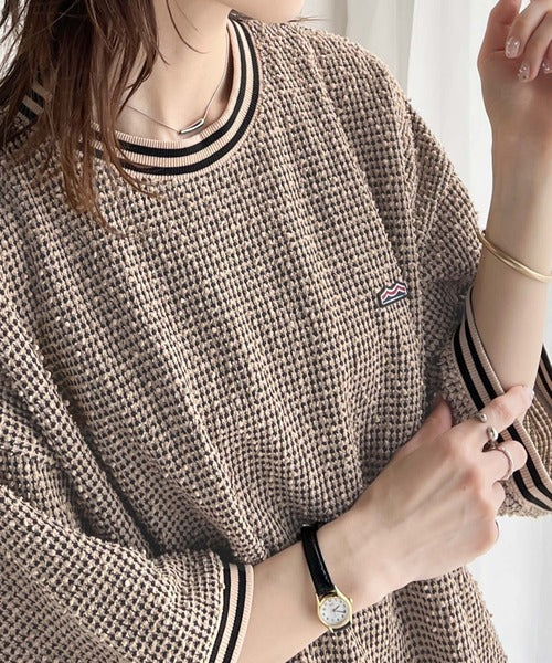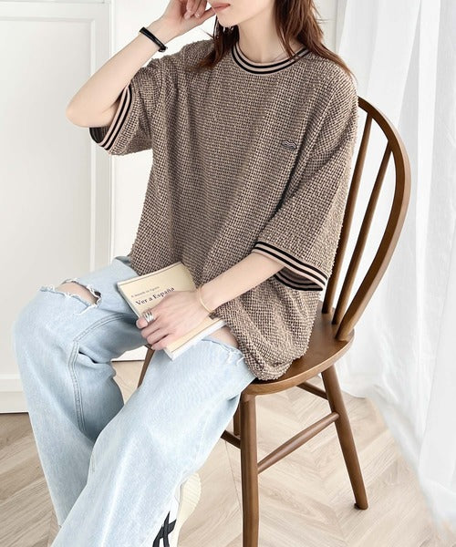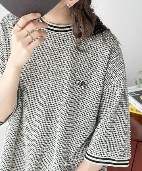 凹凸感のあるジャガード素材に配色リブラインでカジュアルなアクセントをプラスしました。