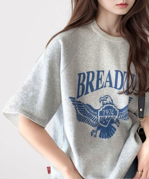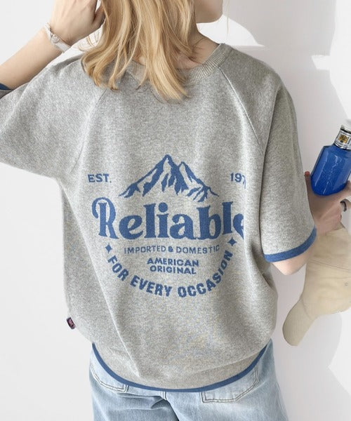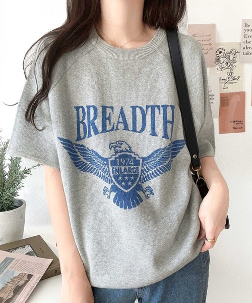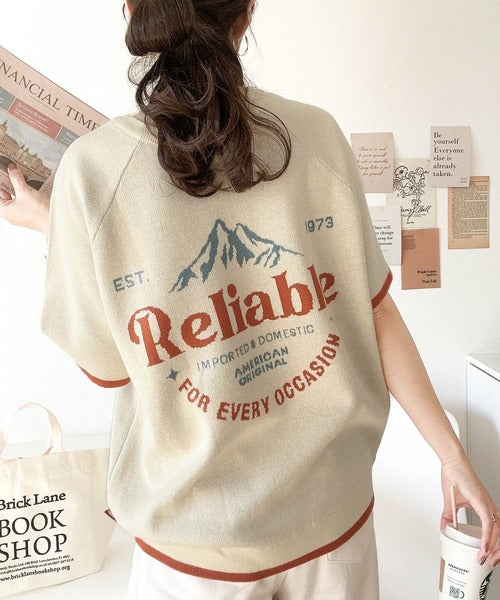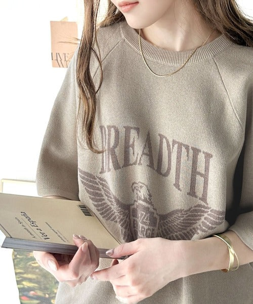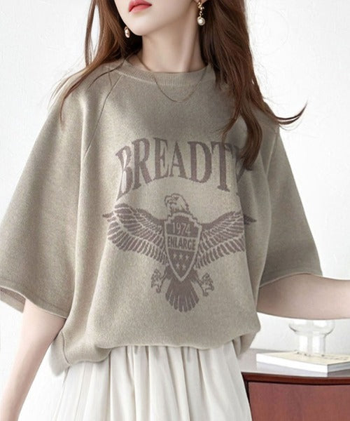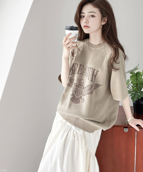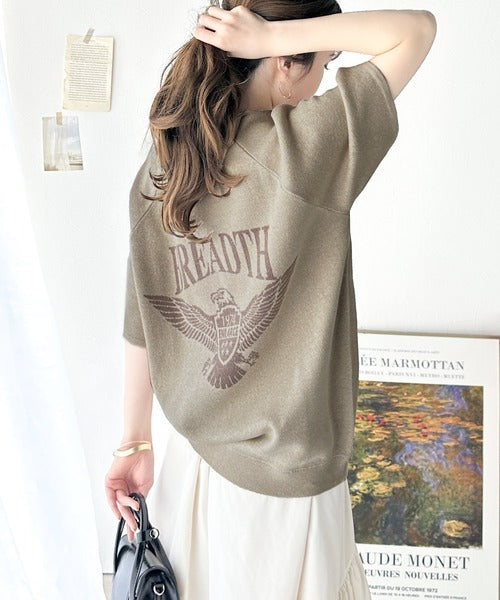 《JaVa ジャバコラボ》大人のカジュアルトップス。前後2way ラグラン半袖グラフィックニットTシャツ jv1050169