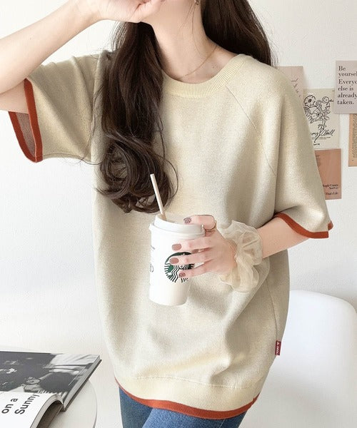 スウェットライクに着こなせるニットオーバーサイズ Tシャツ。