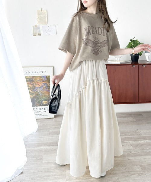 前後2WAY仕様なので、コーデによってグラフィック柄と無地見えを使い分けられるのが嬉しいポイント。